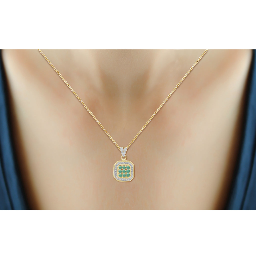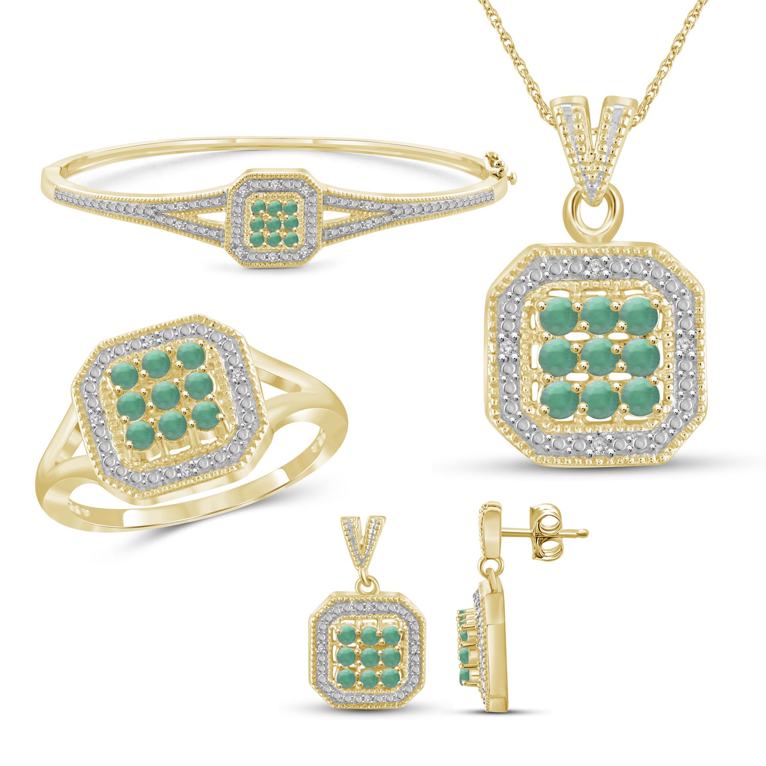 2 3/4 Carat T.G.W. Emerald And 1/7 Carat T.W. White Diamond 14K Gold-Plated 4-Piece Jewelry Set