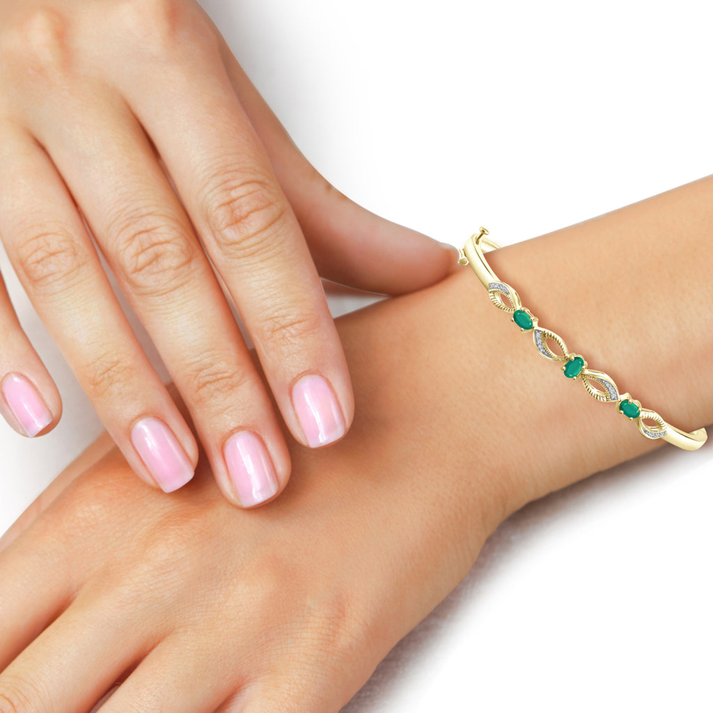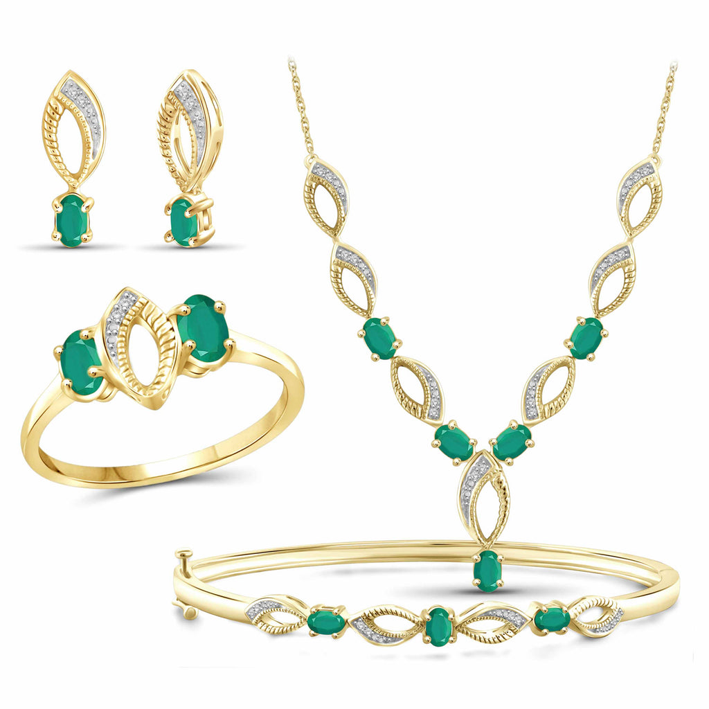 2 3/4 Carat T.G.W. Emerald And 1/10 Carat White Diamond 14K Gold-Plated 4-Piece Jewelry set