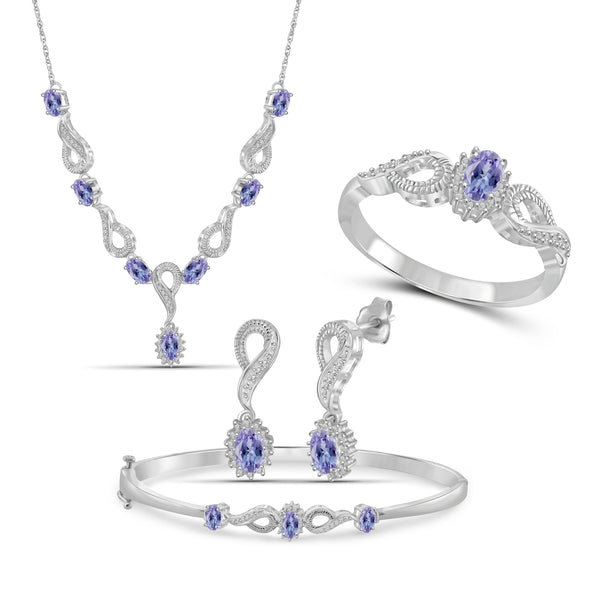 3.00 Carat T.G.W. Tanzanite And White Diamond Accent Sterling Silver 4-Piece Jewelry set