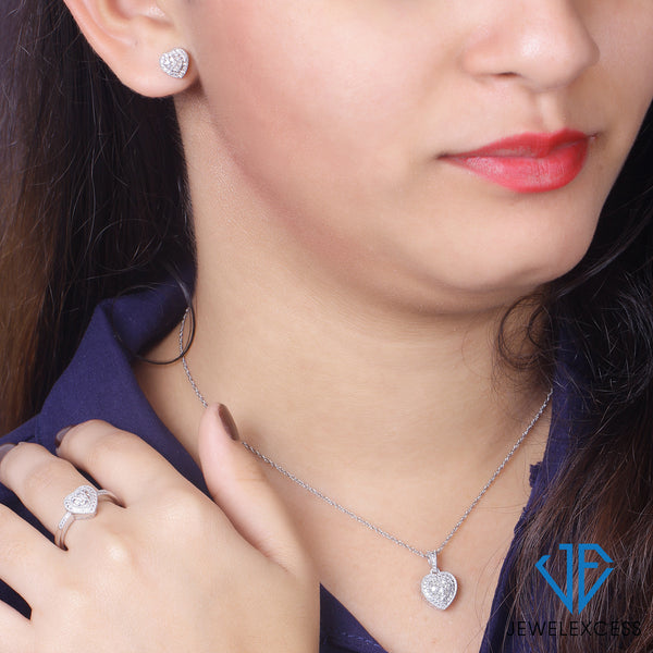 - You want your womens jewelry to make an impact and our Sterling Silver stud earrings, Heart pendant, and Sterling Silver ring set is perfectly sized for a glamorous yet tasteful effect, to add just the right touch of sparkle to any outfit.