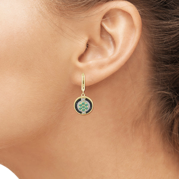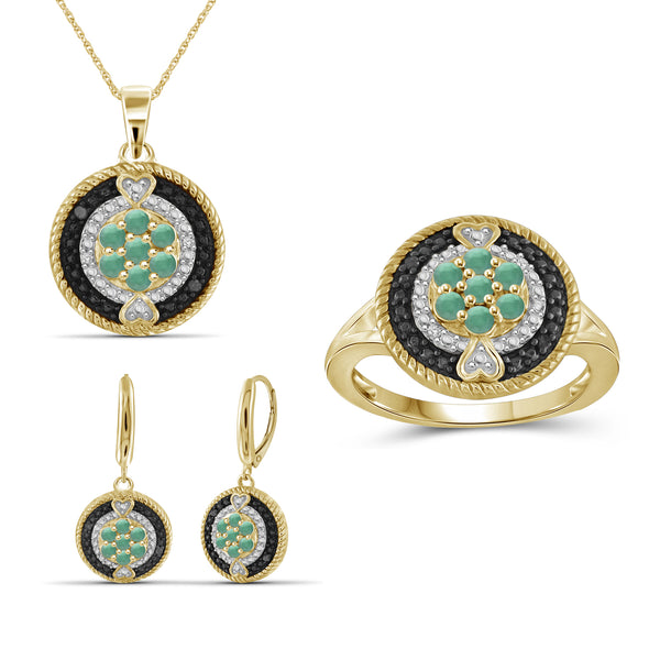 1 1/2 Carat T.G.W. Emerald And Black & White Diamond Accent 14K Gold-plated 3-Piece Jewelry Set