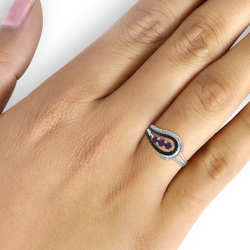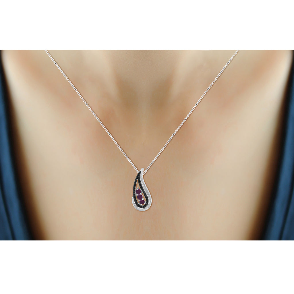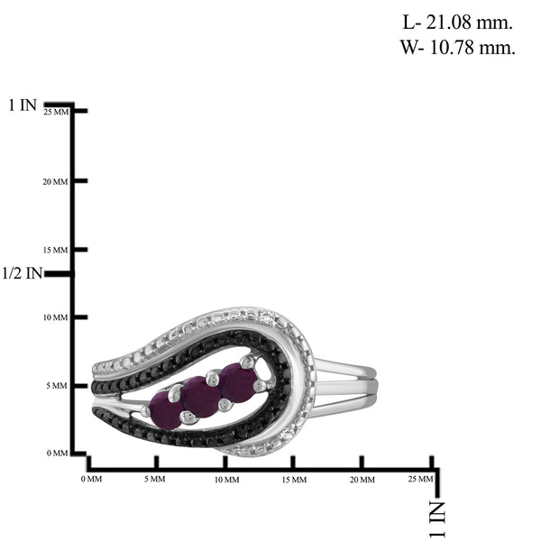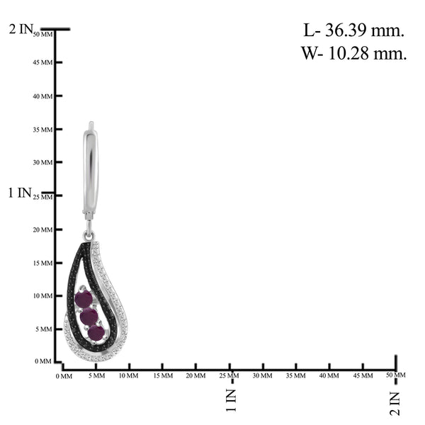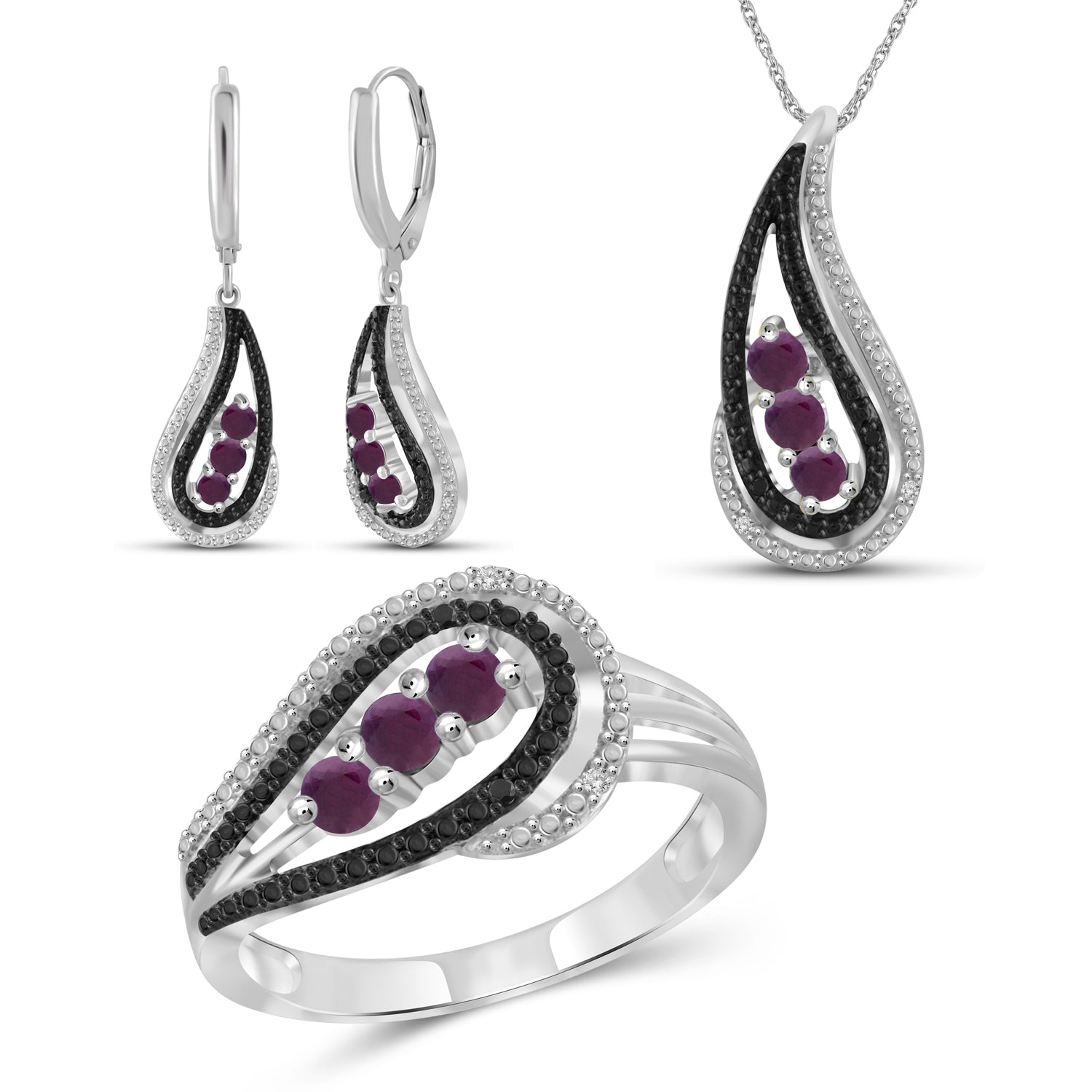 1 3/4 Carat T.G.W. Ruby And Black & White Diamond Accent Sterling Silver 3-Piece Cluster Jewelry set
