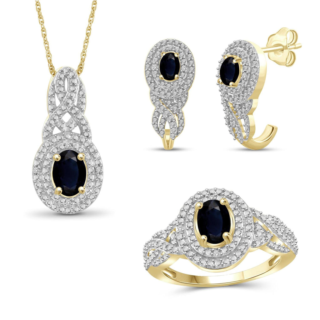 2 3/4 Carat T.G.W. Sapphire And White Diamond Accent 14K Gold-Plated 3-Piece Jewelry set