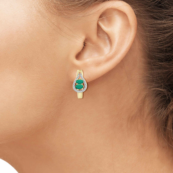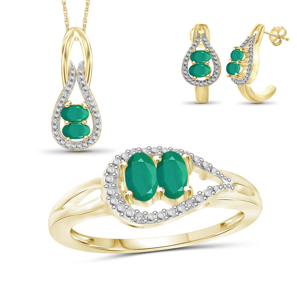 1 3/4 Carat T.G.W. Emerald And White Diamond Accent 14K Gold-plated 3-Piece Jewelry set