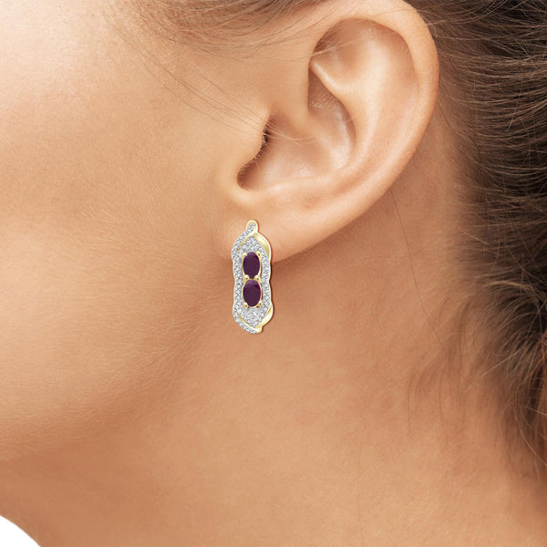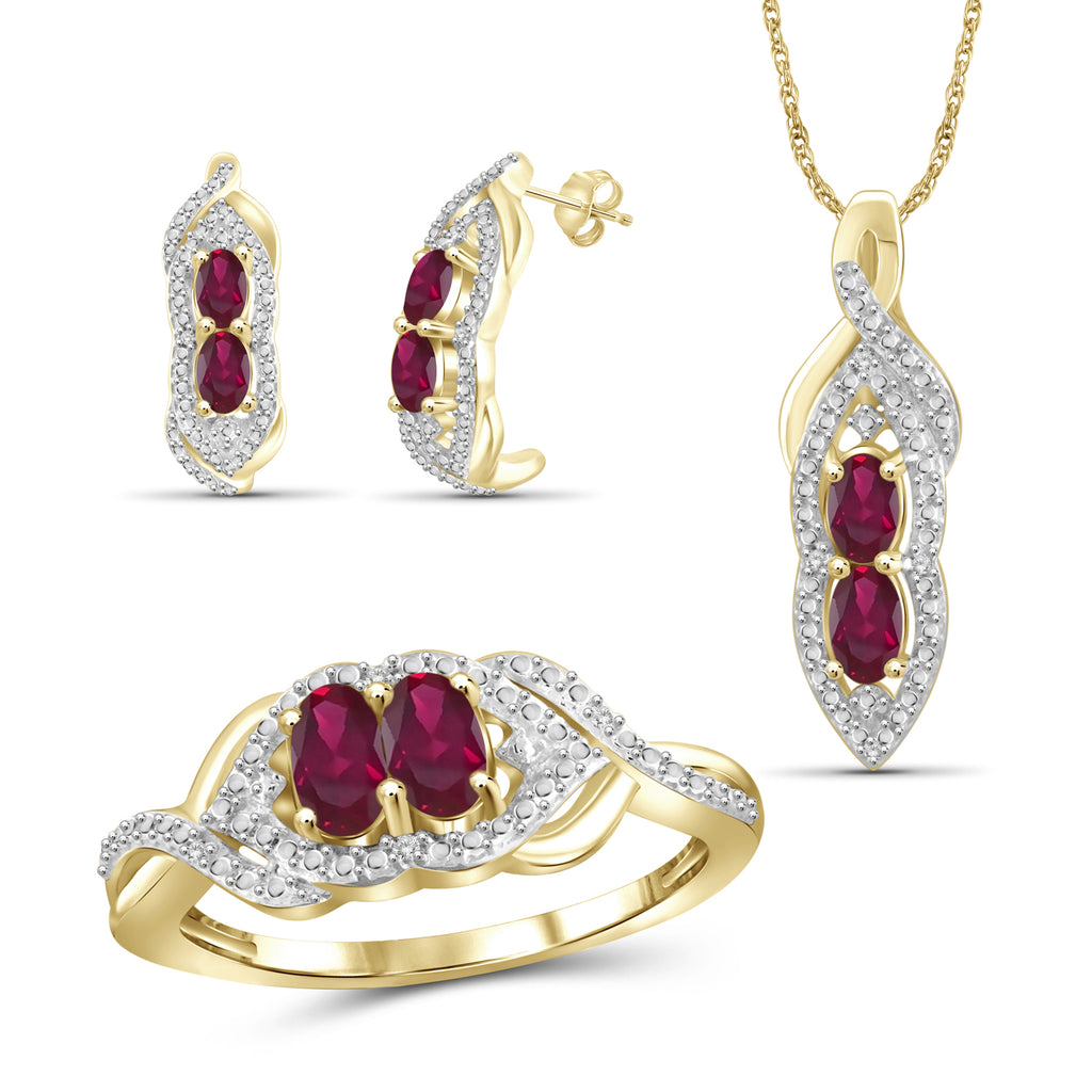 2.00 Carat T.G.W. Ruby And White Diamond Accent 14K Gold-plated 3-Piece Jewelry set