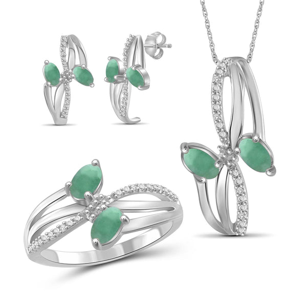 1 3/4 Carat T.G.W. Emerald And White Diamond Accent Sterling Silver 3-Piece Jewelry set