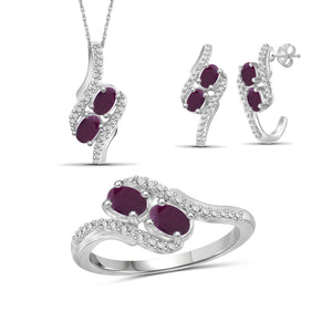 2.00 Carat T.G.W. Ruby And White Diamond Accent Sterling Silver 3-Piece Jewelry set