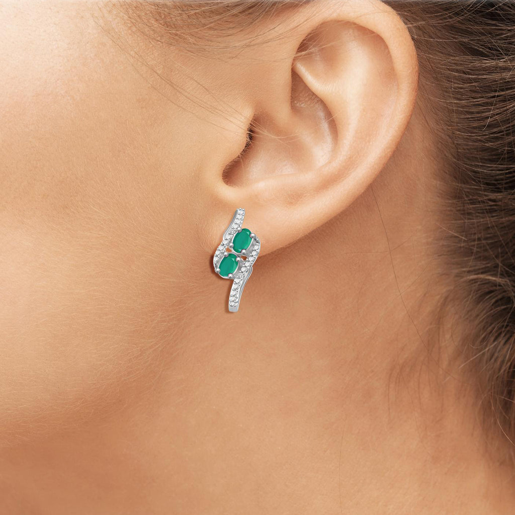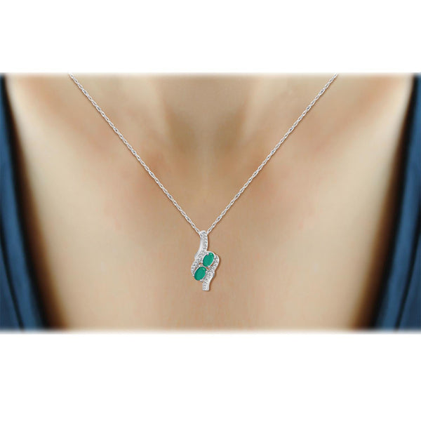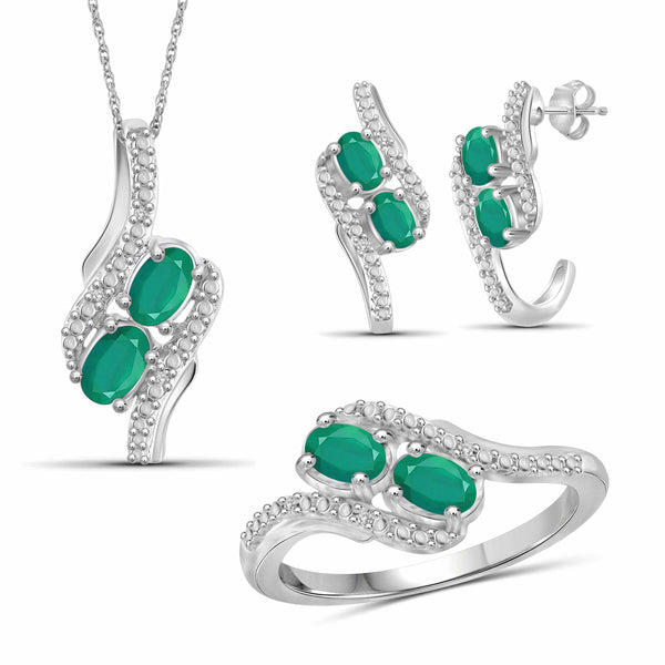 1 3/4 Carat T.G.W. Emerald And White Diamond Accent Sterling Silver 3-Piece Jewelry set