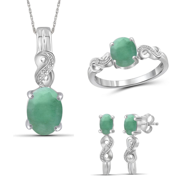 3 1/3 Carat T.G.W. Emerald And White Diamond Accent Sterling Silver 3-Piece Jewelry set