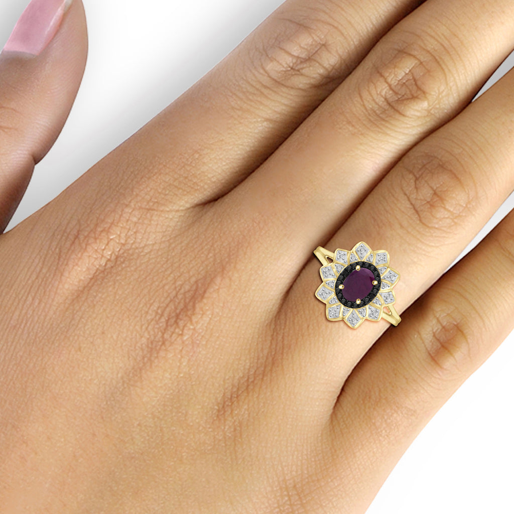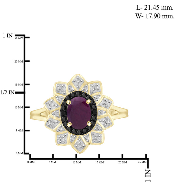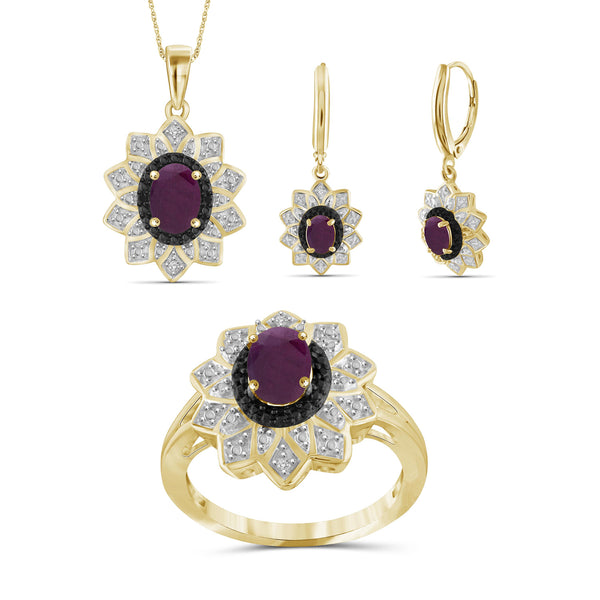 2.75 CTW Ruby & 1/20 Carat Black and White Diamond 14K Gold Over Silver 3-Piece Jewelry set