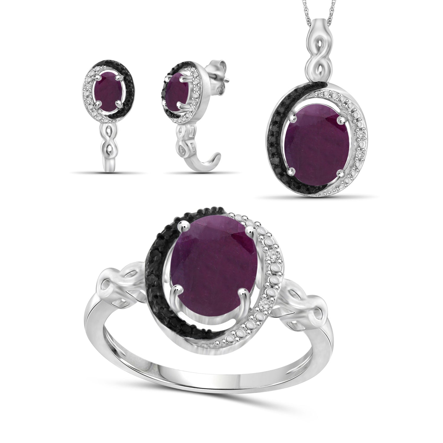 6.00 Carat T.G.W. Ruby And Black & White Diamond Accent Sterling Silver 3-Piece Jewelry set