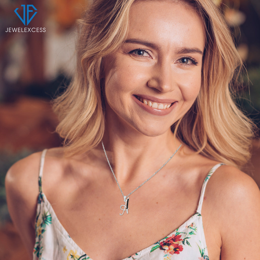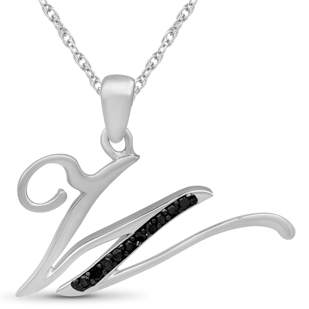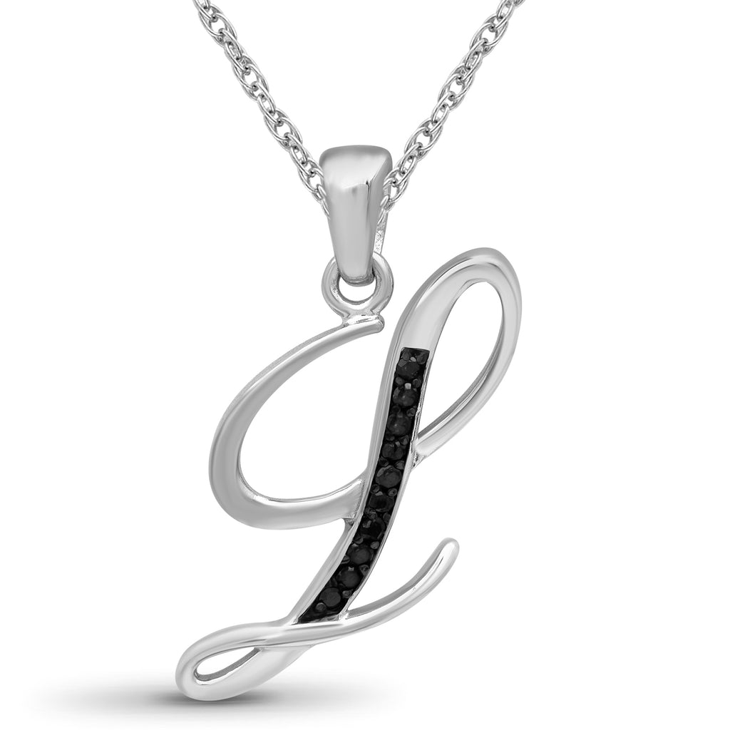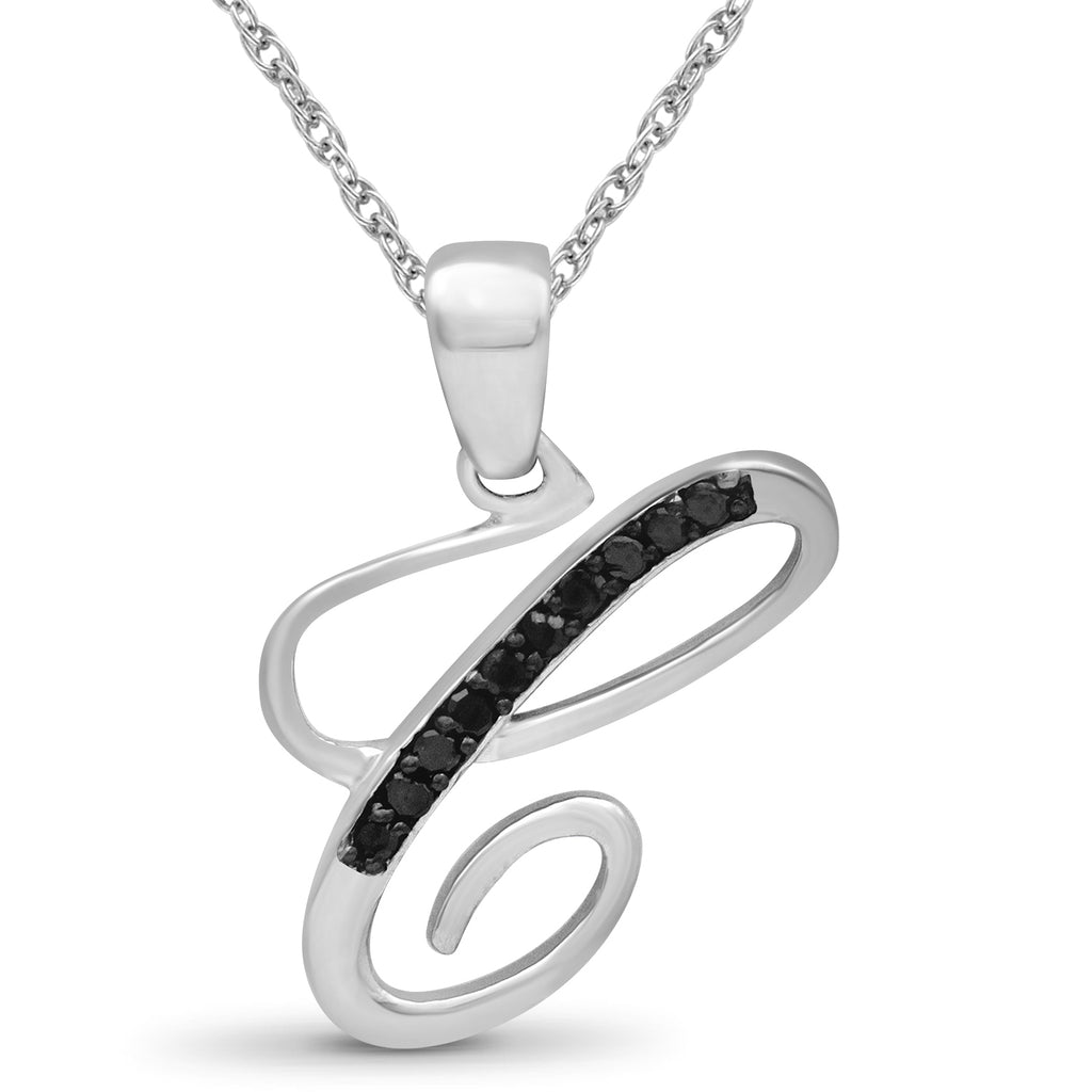 - Diamonds Fit to Dazzle: Your new JewelExcess 1/20 Carat black diamond initial pendant necklace is a stunning piece of letter art. Carefully chosen black diamonds sparkle and glisten on your neck. Add to your jewelry collection and let your style take center stage with a new initial, diamond pendant