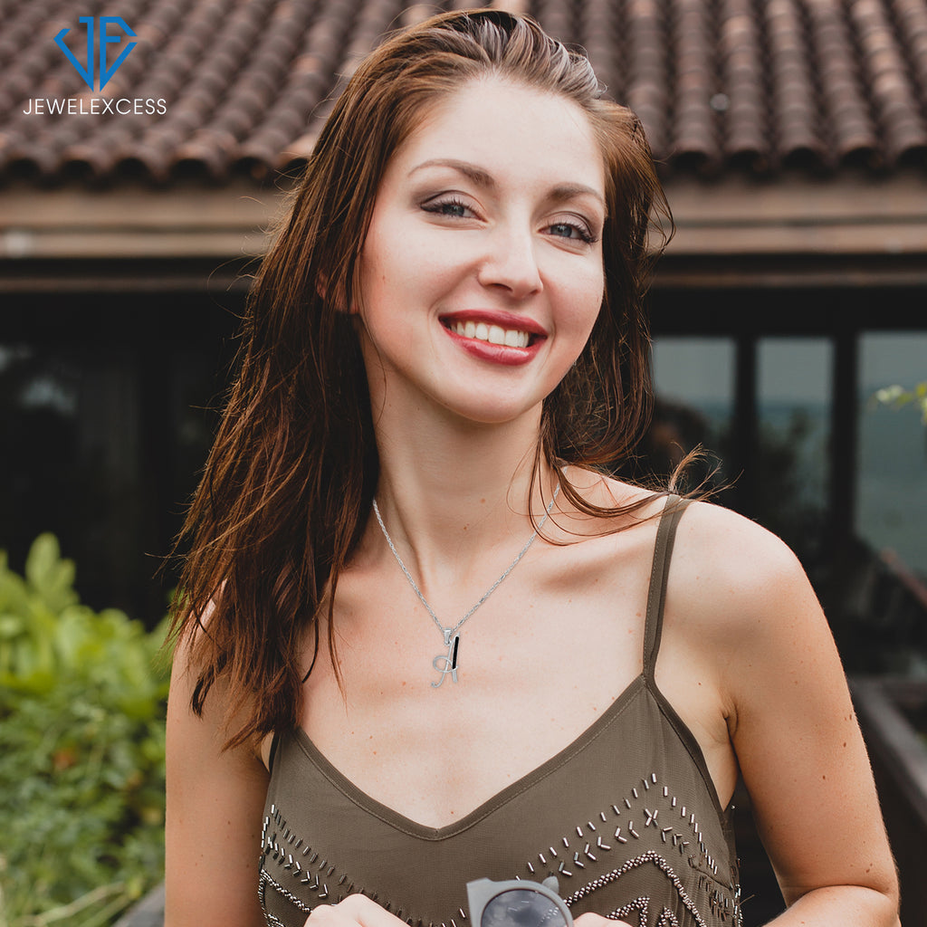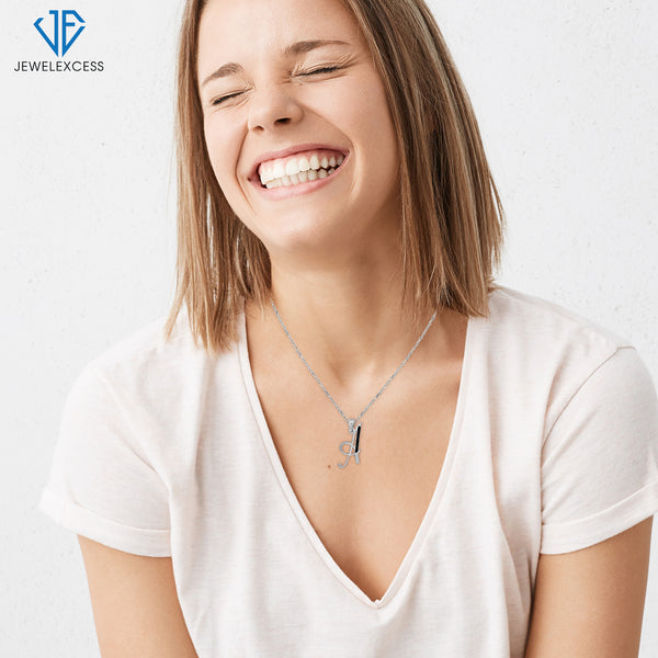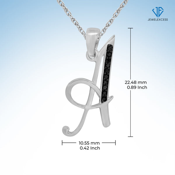 1/20 Carat Black Diamond Initial Letter Pendant Necklace for Women | .925 Sterling Silver A to Z Alphabet Monogram Necklaces for Girls | Script Capital Letters | Personalized Jewelry Gift for Her