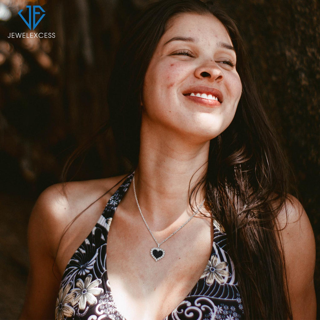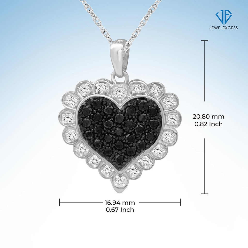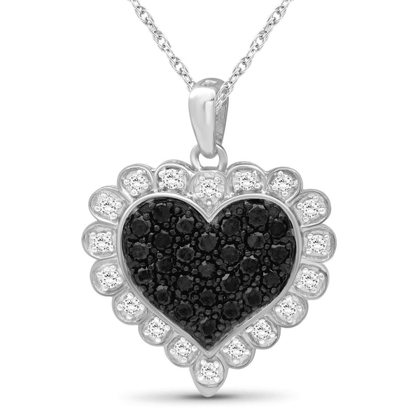 - A Gift That Sparkles & Dazzles All: This timeless diamond heart pendant is sure to capture anyone’s heart. Fashioned with loads of brilliant black and white diamonds, this 1/2 carat heart necklace is romantic, dreamy and expertly crafted to reflect your love.