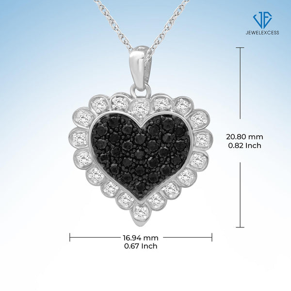 Sterling Silver (.925) Heart Necklace with 1/2 Carat Black and White Diamonds | Jewelry Pendant Necklaces for Women Black and White Diamonds & 18 inch Rope Chain with Spring Clasp