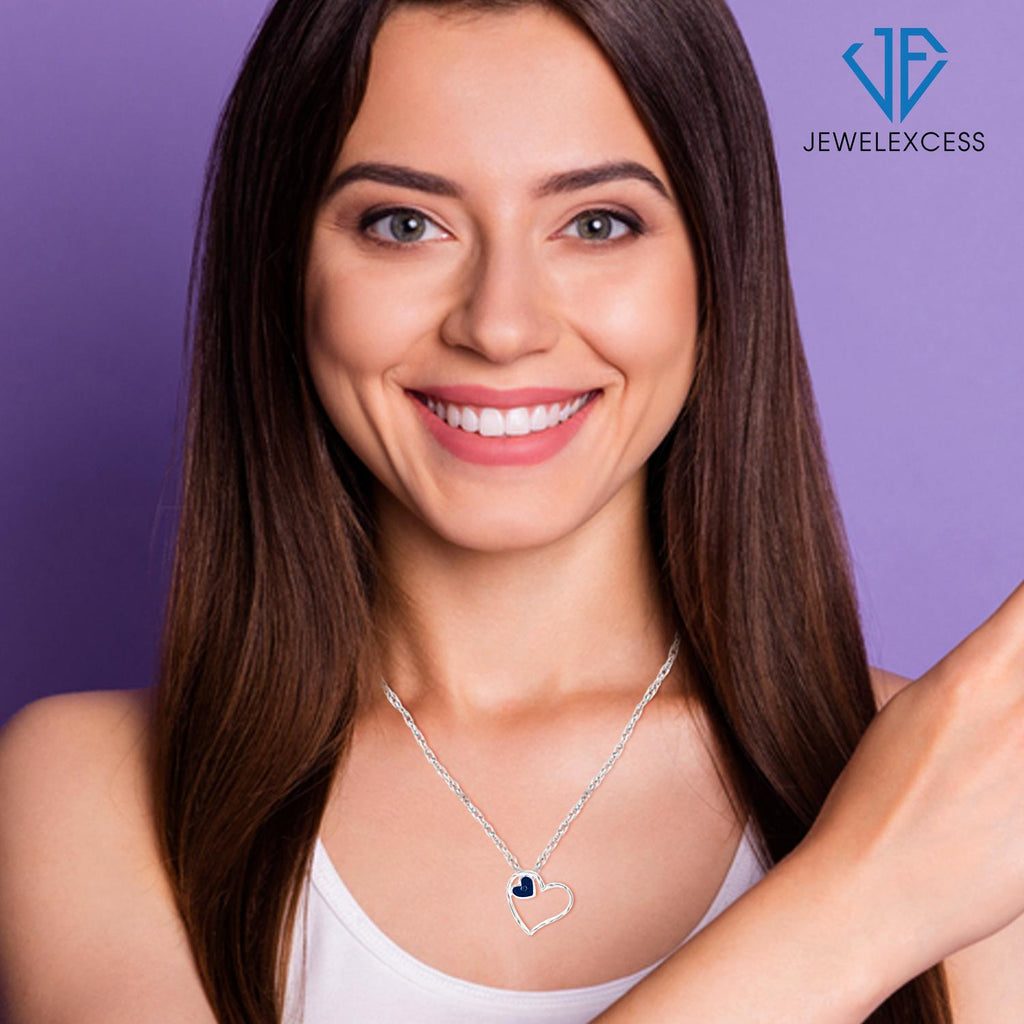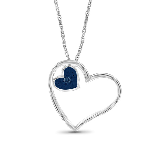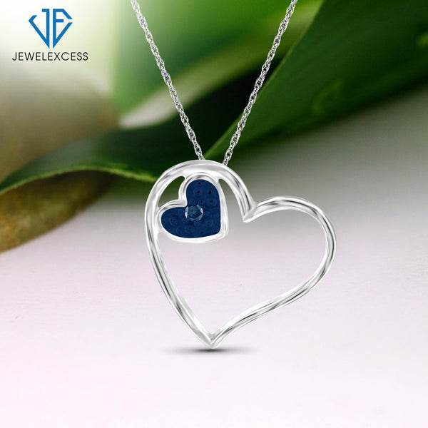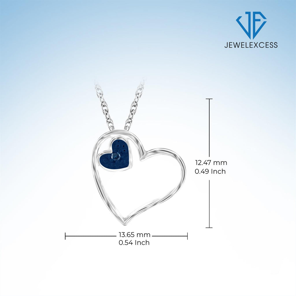 Accent Blue Diamond Heart Pendant in Sterling Silver