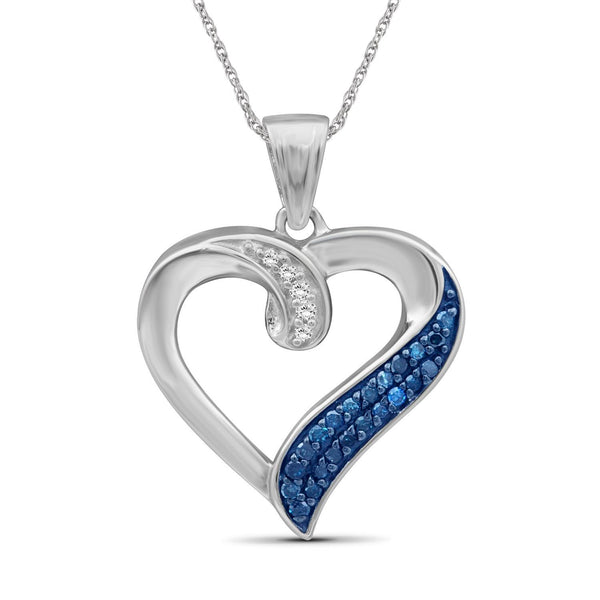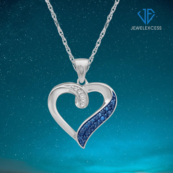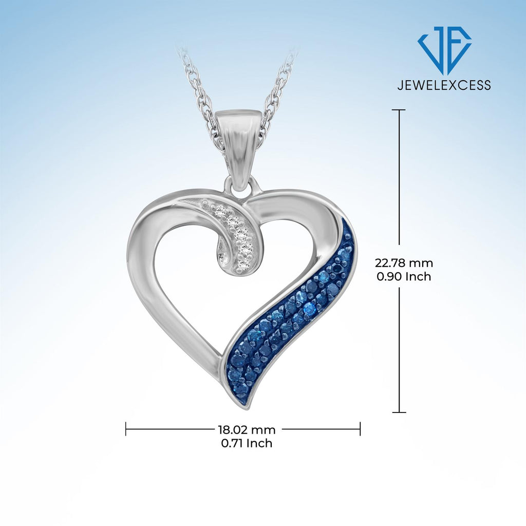 1/7 Carat Blue and Accent White Diamond Heart Pendant in Sterling Silver