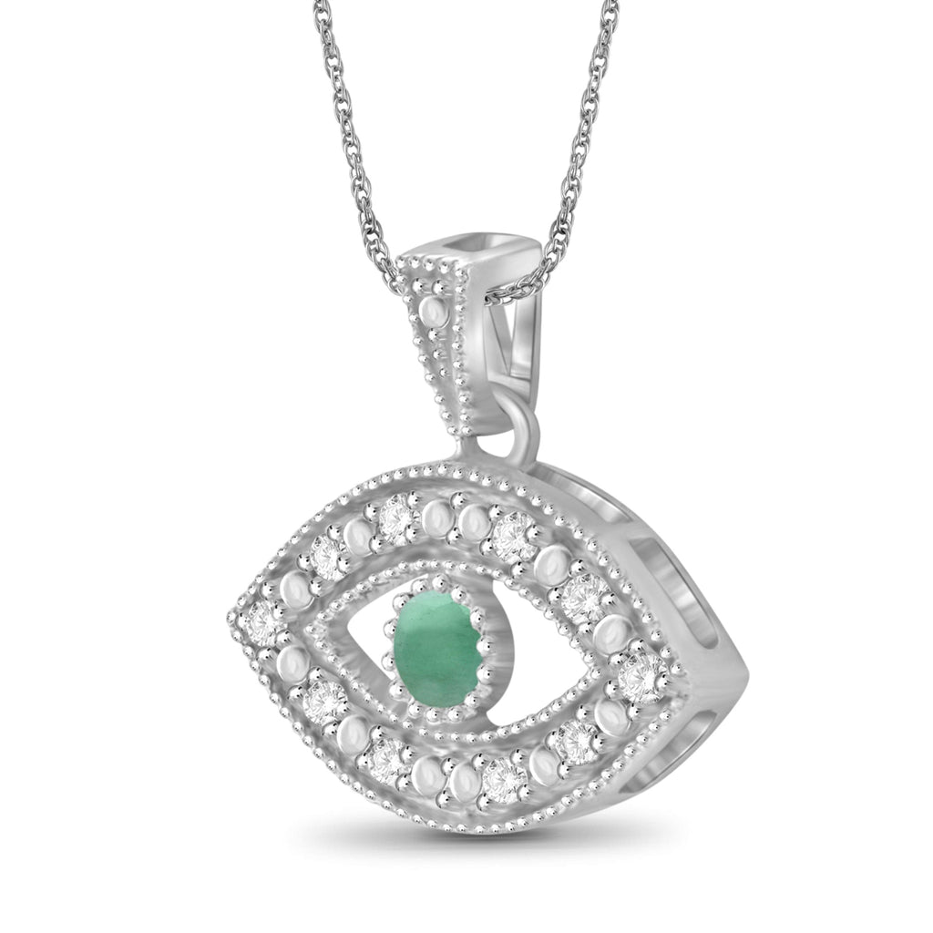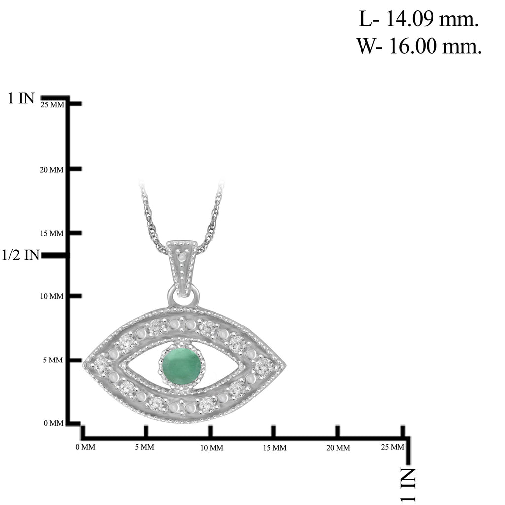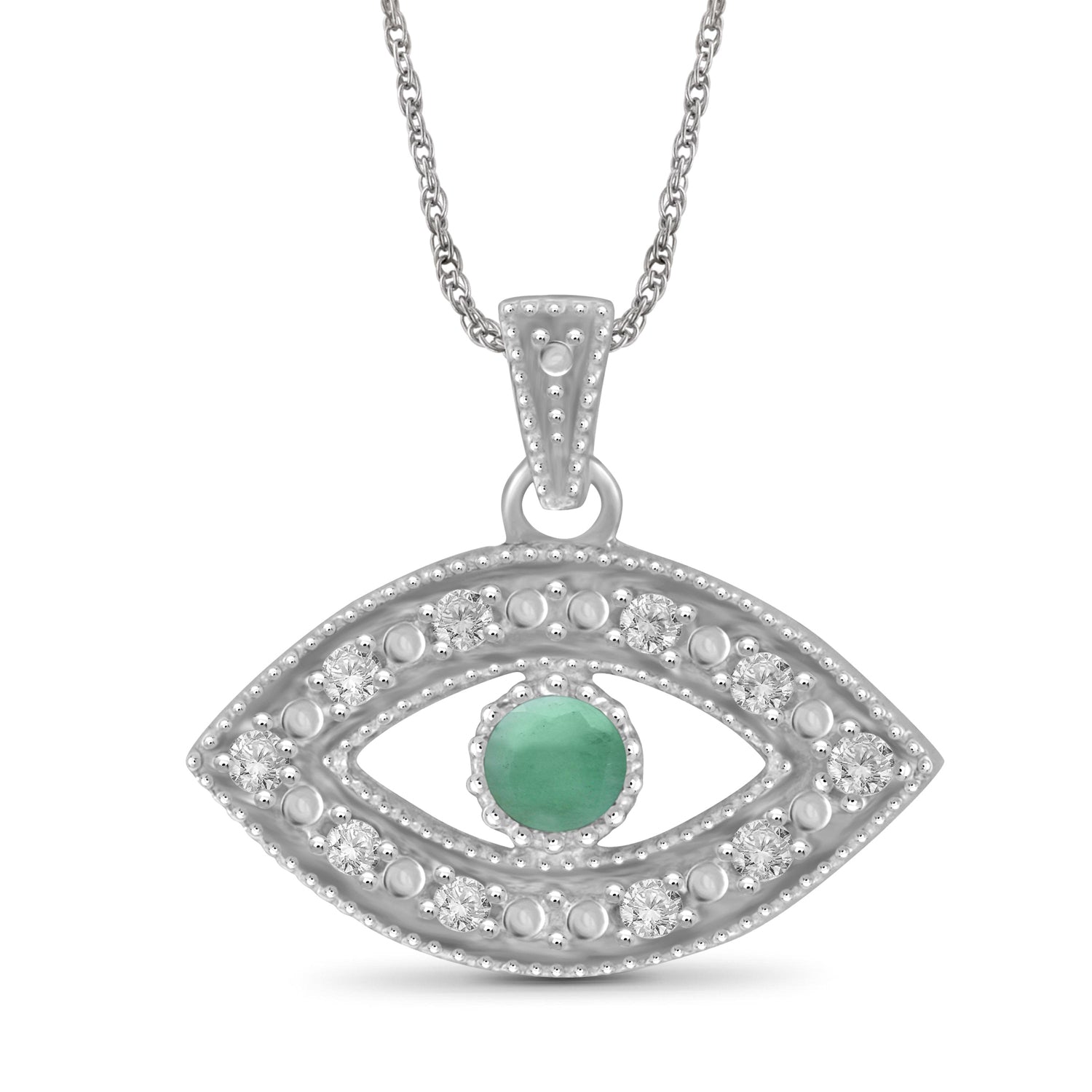 Emerald Accent And White Diamond Accent Sterling Silver Evil Eye Pendant, 18"