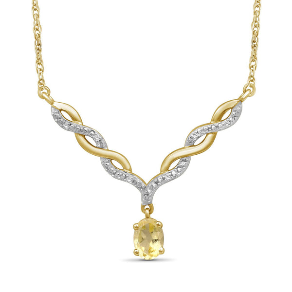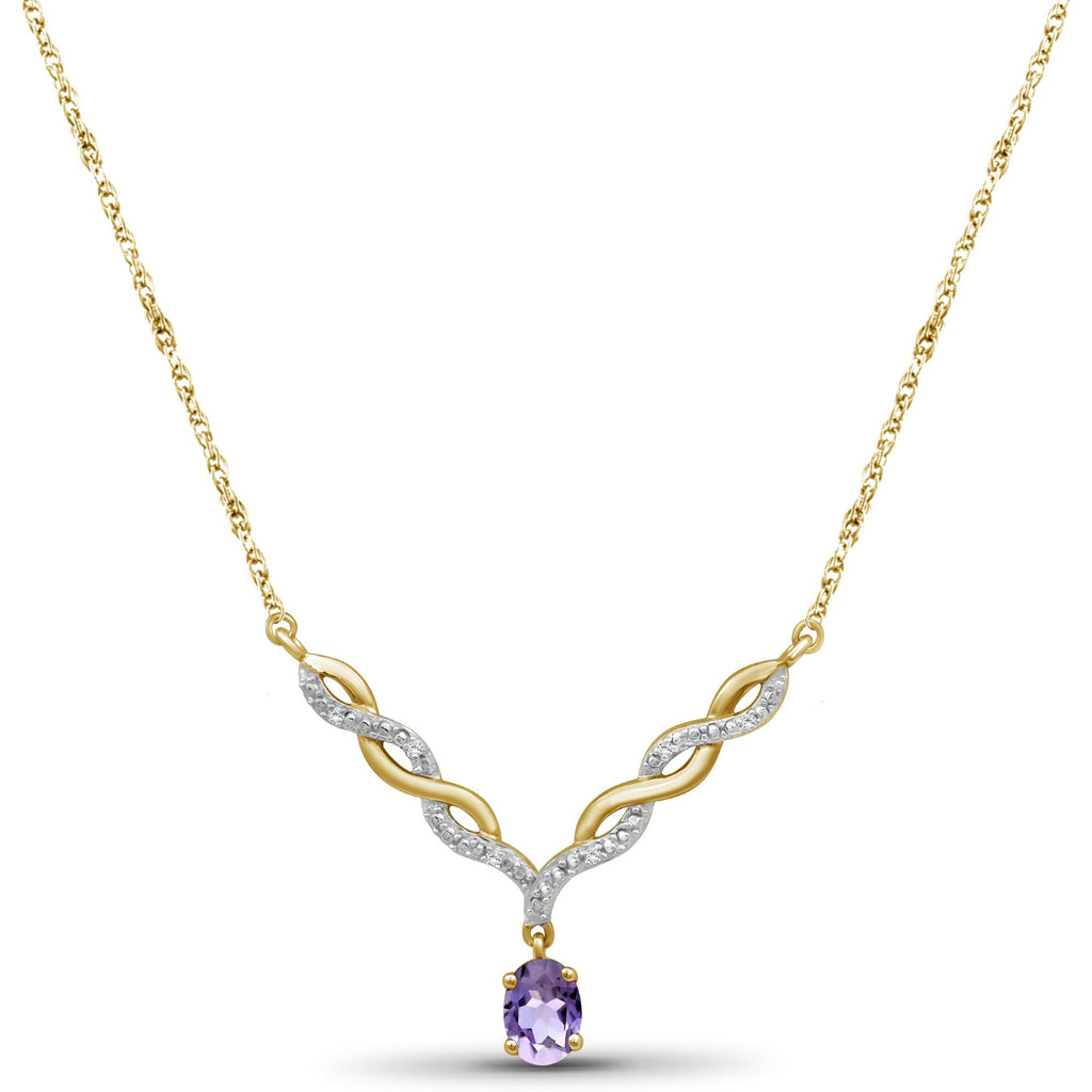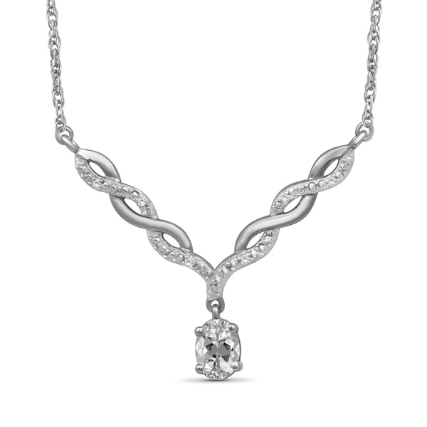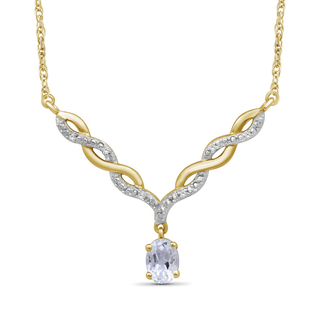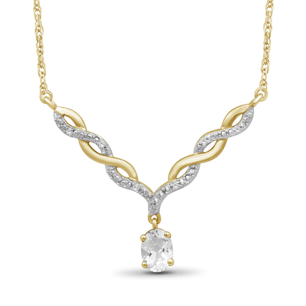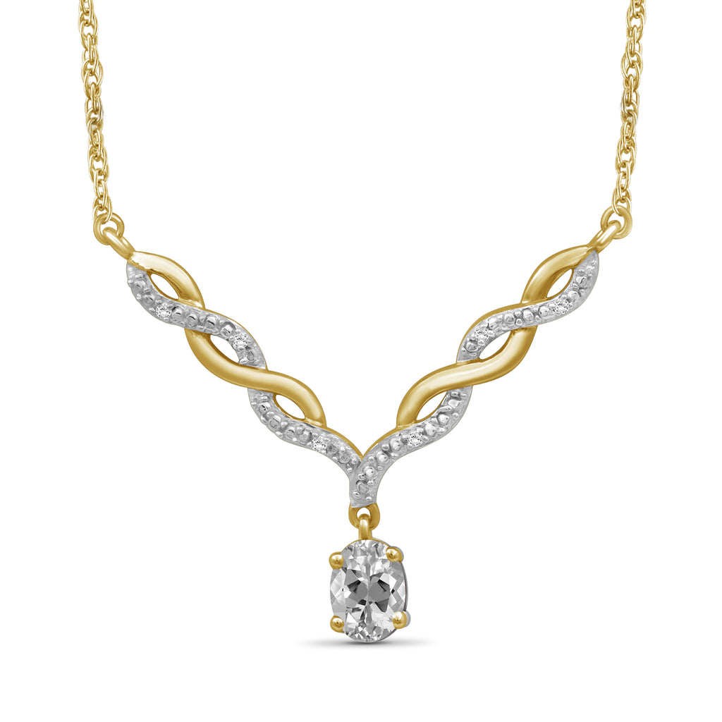 - Authentically Designed to Dazzle: Stunning in every way, this gemstone necklace features a beautiful crystal dangling from a woven V-shaped plate that's adorned with diamonds. Enhanced with sterling silver Or 14k gold-plated , it's as durable as it is dazzling.