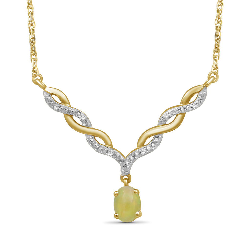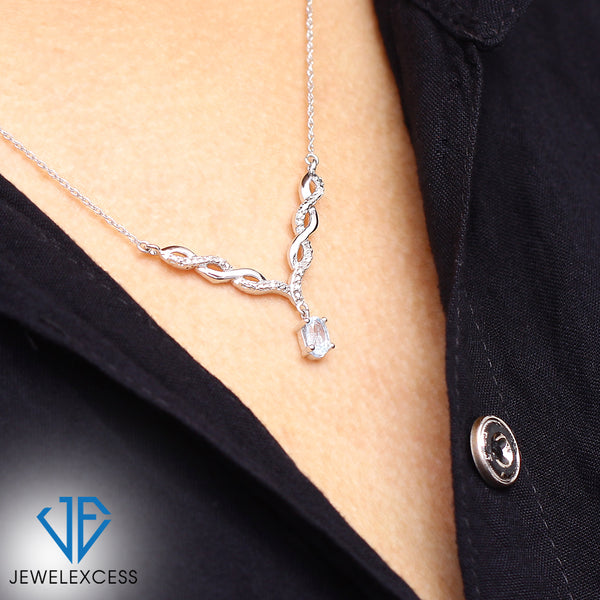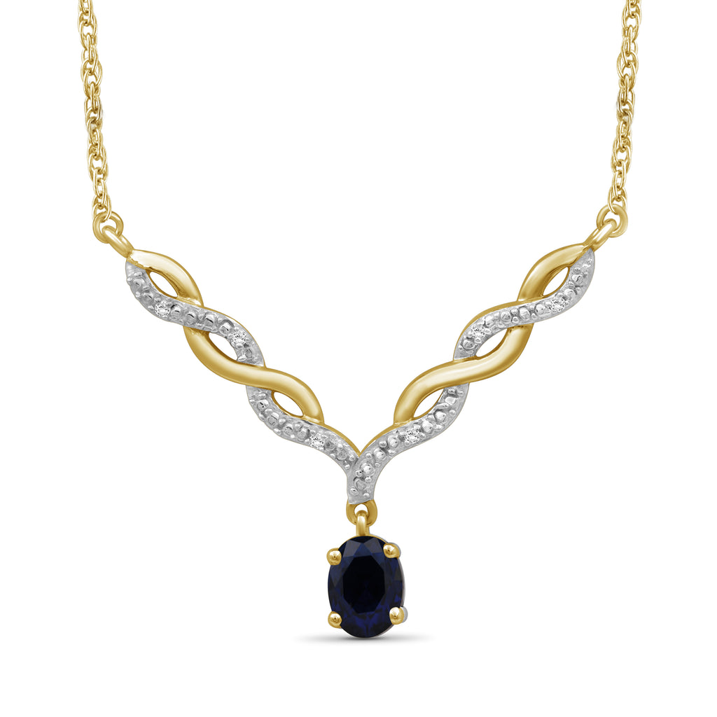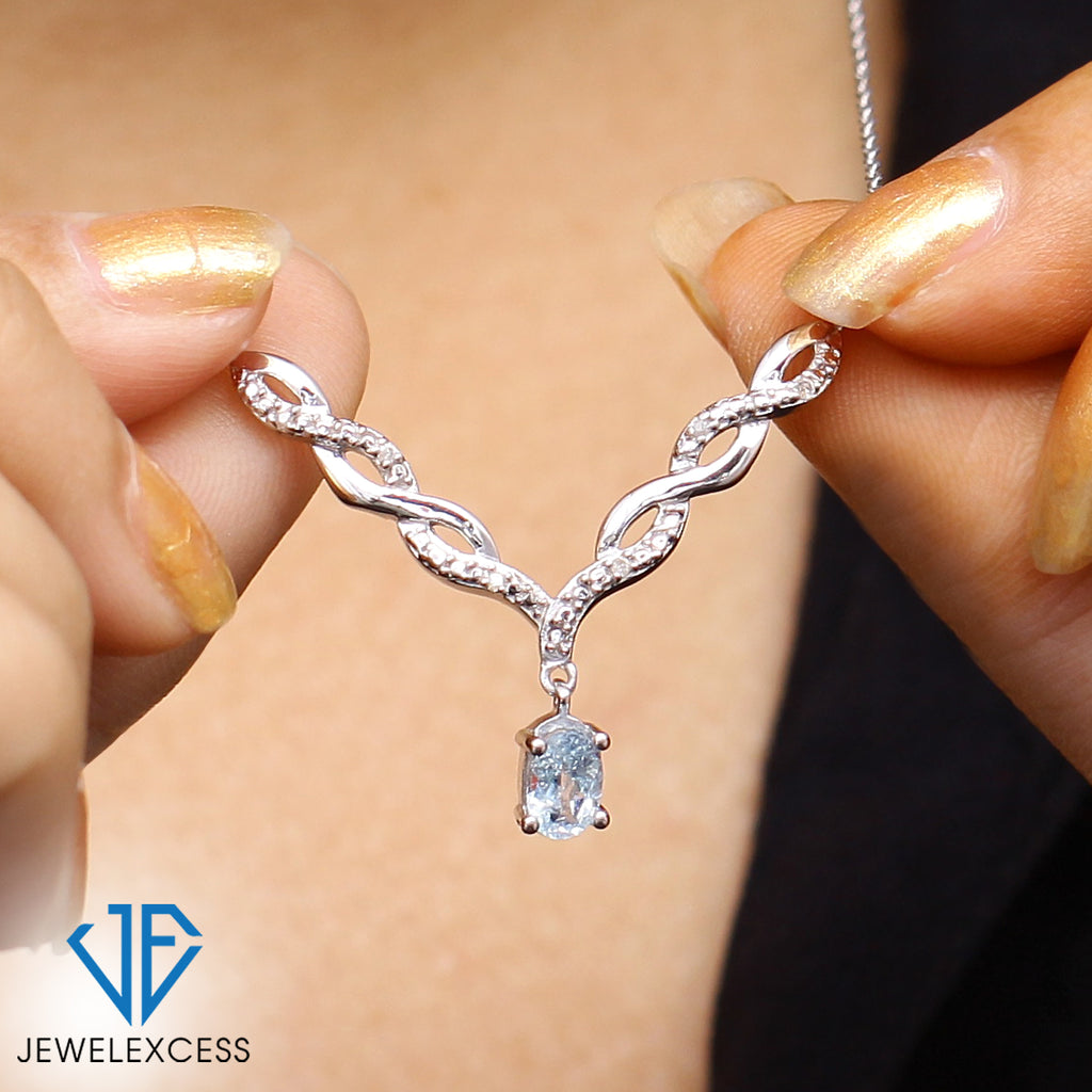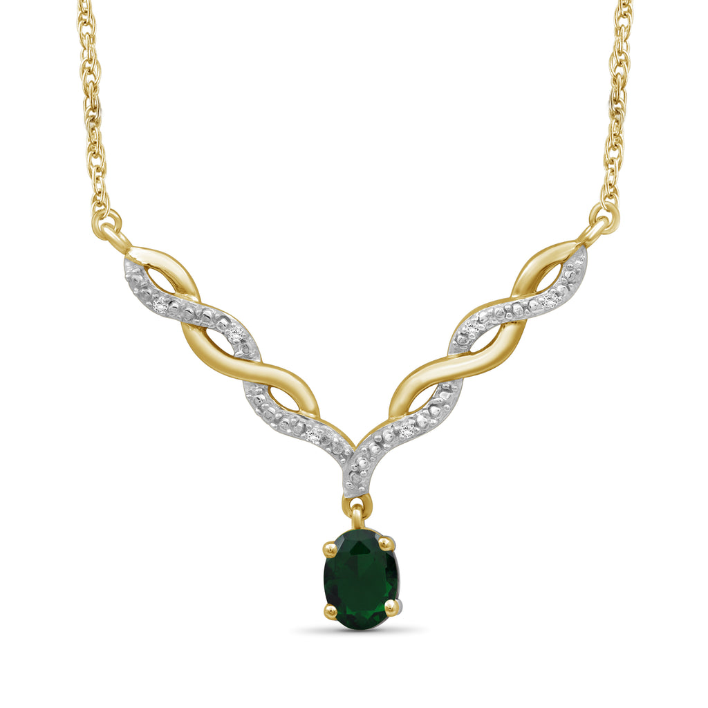 - Authentically Designed to Dazzle: Stunning in every way, this gemstone necklace features a beautiful crystal dangling from a woven V-shaped plate that's adorned with diamonds. Enhanced with sterling silver Or 14k gold-plated , it's as durable as it is dazzling.