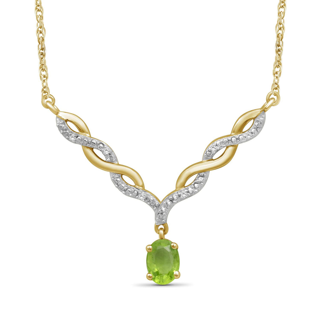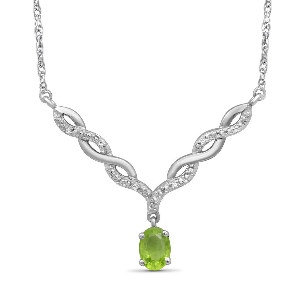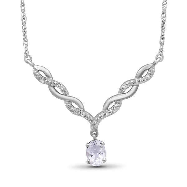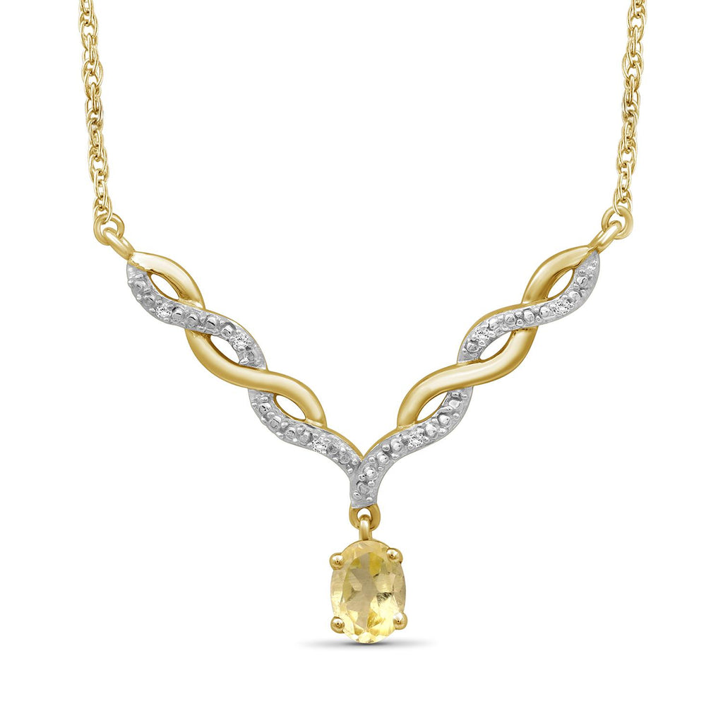 Switch out that basic style for this dazzling beauty. If the sheer beauty of this radiant stone wasn't enough, the gemstone necklace also features a twisted V-shaped plate studded with brilliant diamonds. The gemstone adds a pop of color and brilliant shine to your looks, while the v-shaped entwined links add a feminine touch. Pop this natural gemstone necklace on with any of your favorite looks to add a subtle splash of color and a spoonful of sparkle.