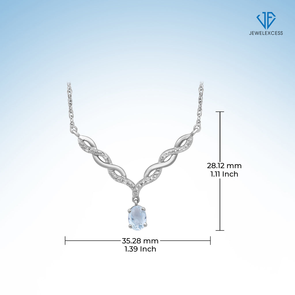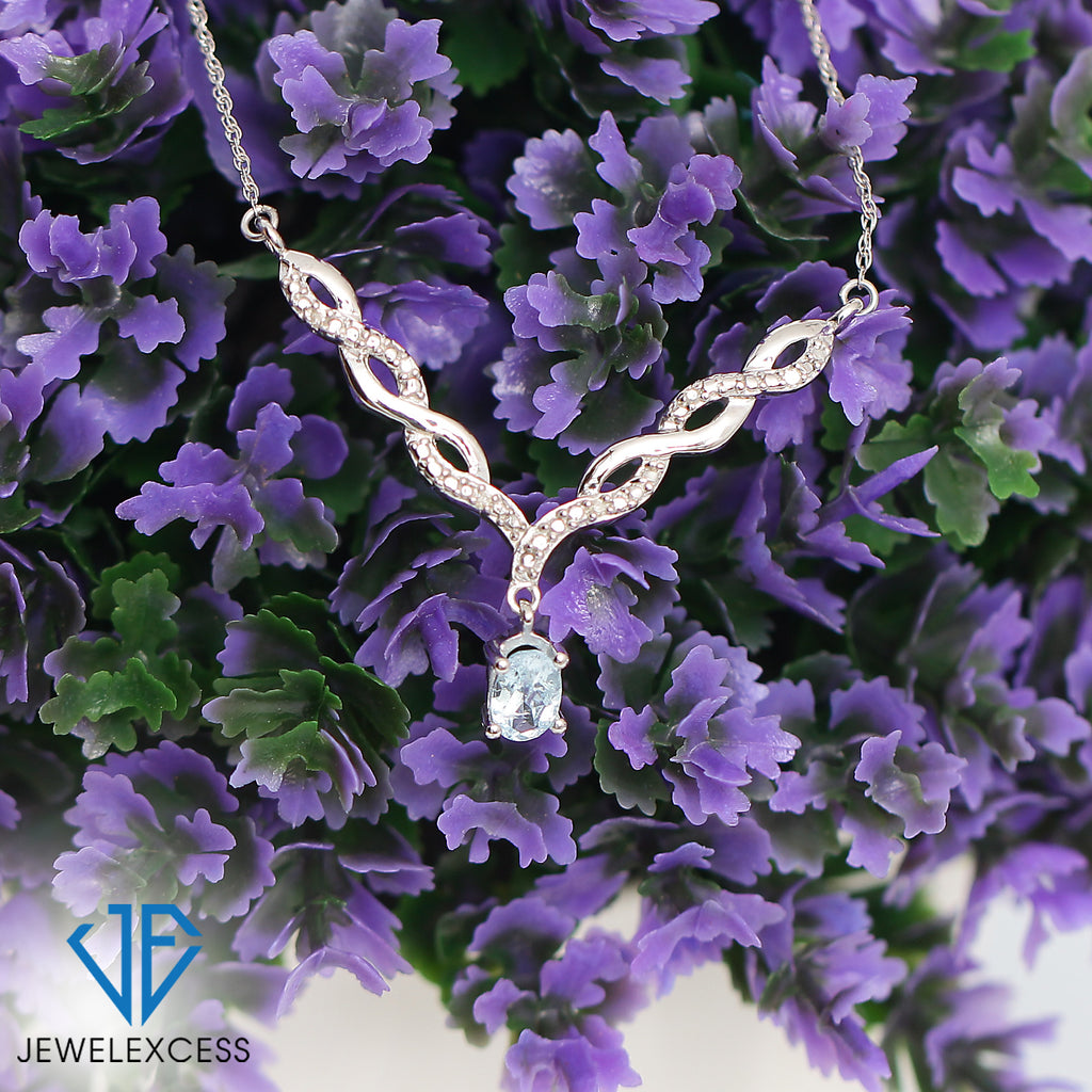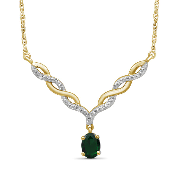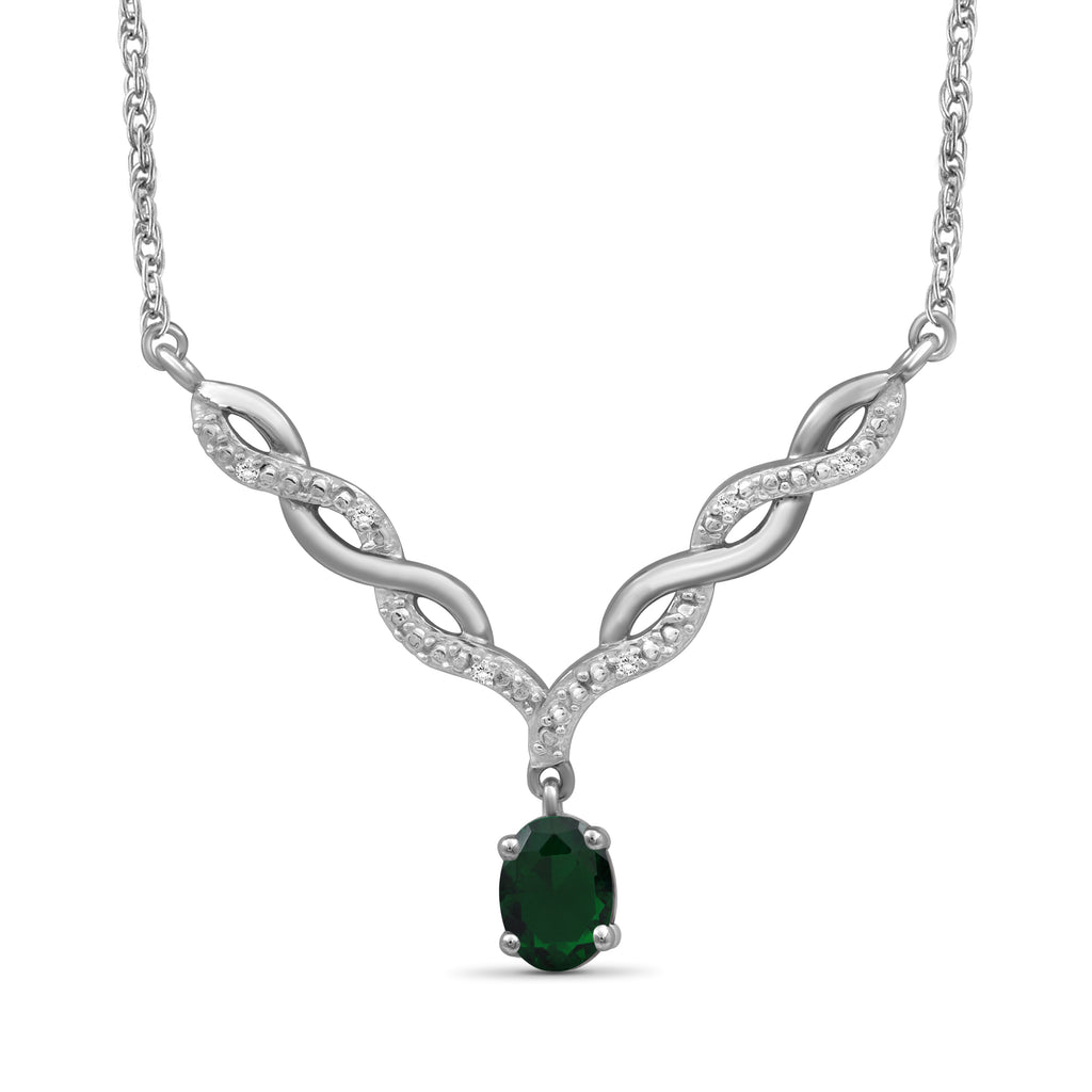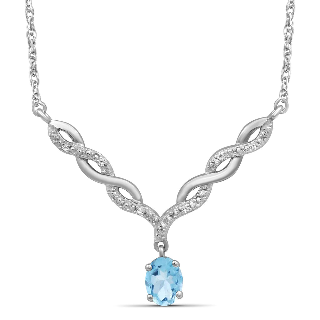 Switch out that basic style for this dazzling beauty. If the sheer beauty of this radiant stone wasn't enough, the gemstone necklace also features a twisted V-shaped plate studded with brilliant diamonds. The gemstone adds a pop of color and brilliant shine to your looks, while the v-shaped entwined links add a feminine touch. Pop this natural gemstone necklace on with any of your favorite looks to add a subtle splash of color and a spoonful of sparkle.