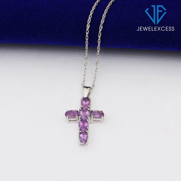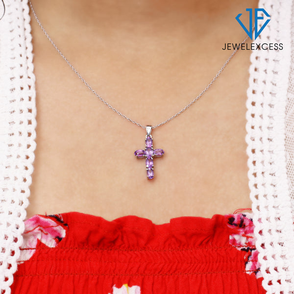 •  necklace that lasts and lasts. Featuring a gorgeous Genuine Amethyst stone centerpiece, this cross pendant simply glows with elegance and impeccable workmanship. Unlike other cross pendants for women that turn out to be made of low-quality materials that break, rust, and become discolored, the JewelExcess Cross Pendant is expertly crafted out of .925 Sterling Silver, for a stunning, premium-quality pendant