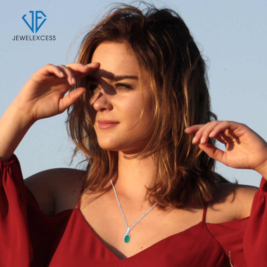 Can't decide on what accessories to wear to your next big event? No matter if it's a cocktail party or a romantic night out, make a dramatic statement when you don this dazzling emerald pendant. With a sterling silver base, this exquisite jeweled piece twinkles and shines draped around your neck. Wear this regal-looking piece with your favorite little black dress, silver metallic clutch and velvet pumps for a look that's fit for any special outing. A dynamic must-have for your jewelry collection.