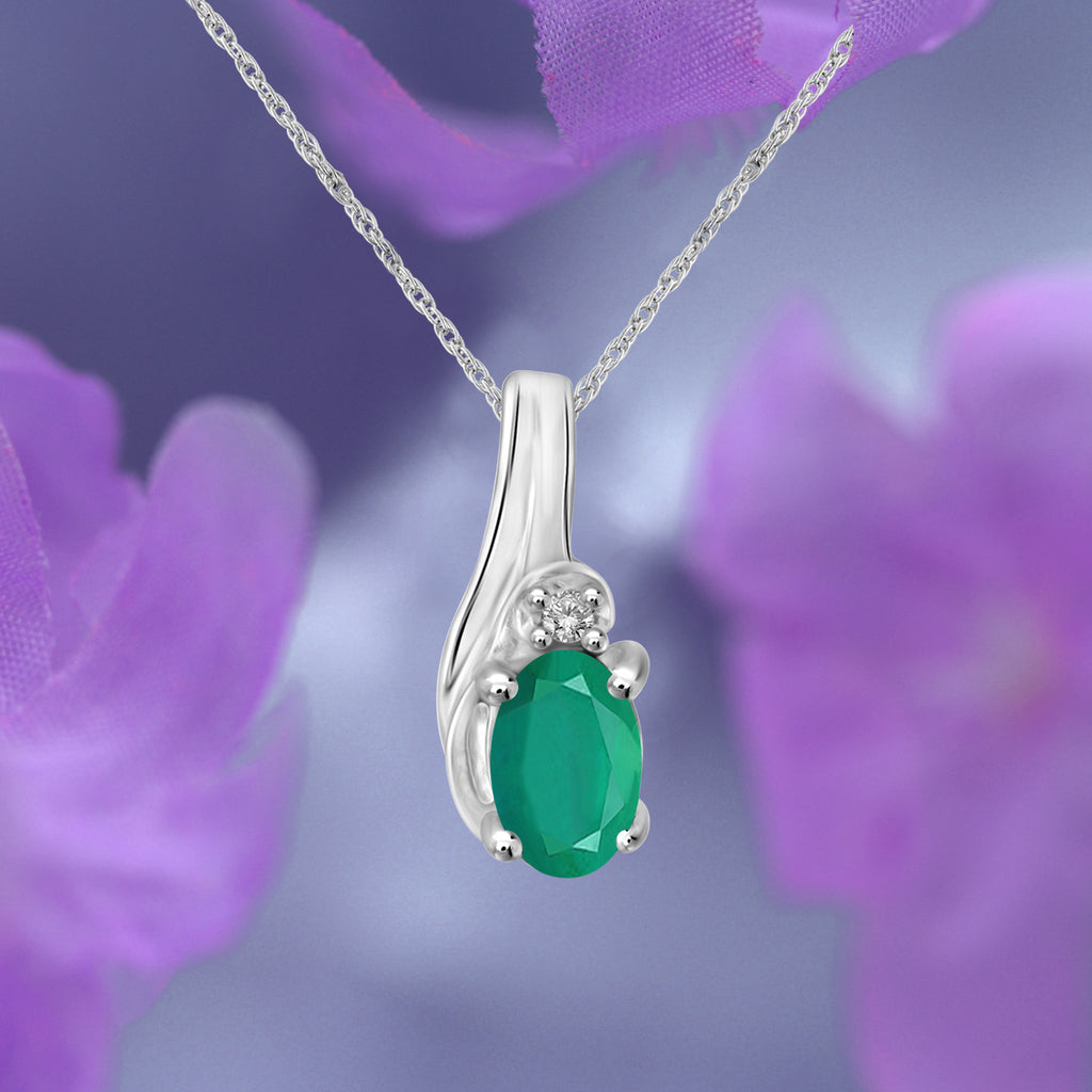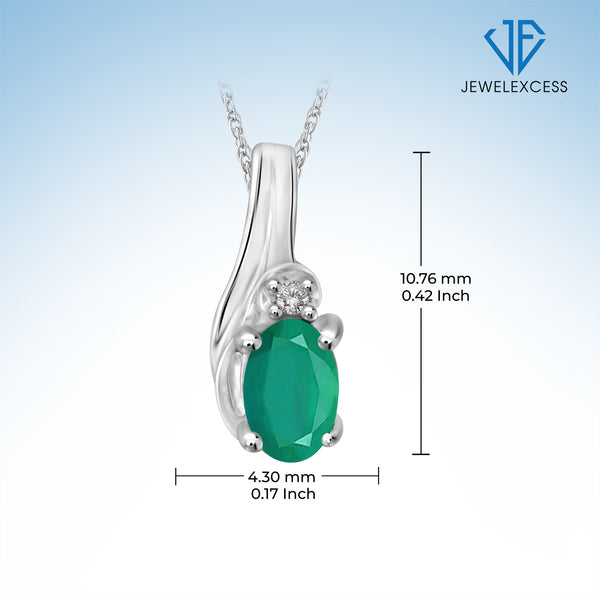 0.23 Ctw Genuine Emerald And White Diamond Accent Sterling Silver Pendant, 18"