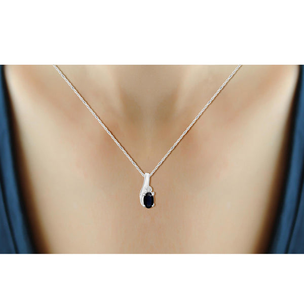 1/3 Carat T.G.W. Sapphire And White Diamond Accent Sterling Silver Pendant, 18"