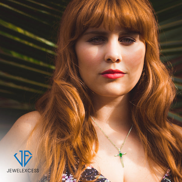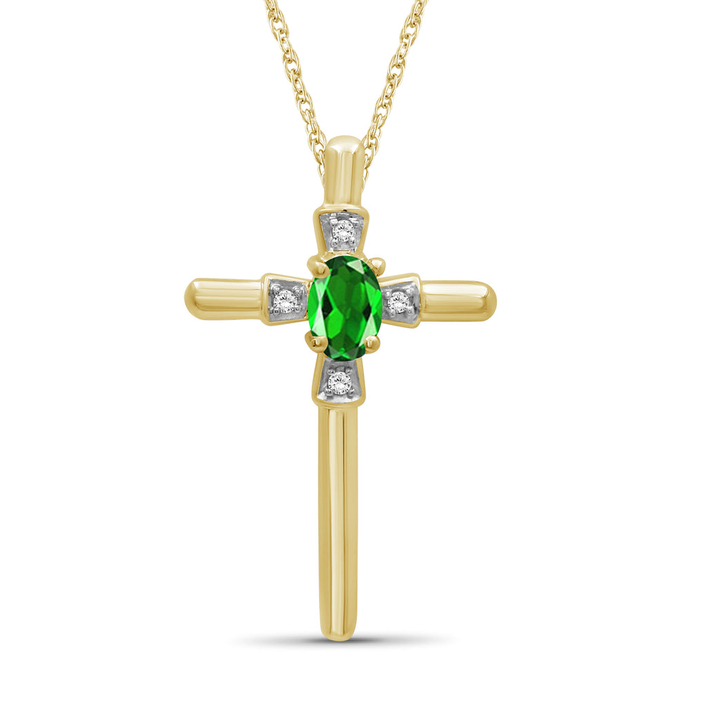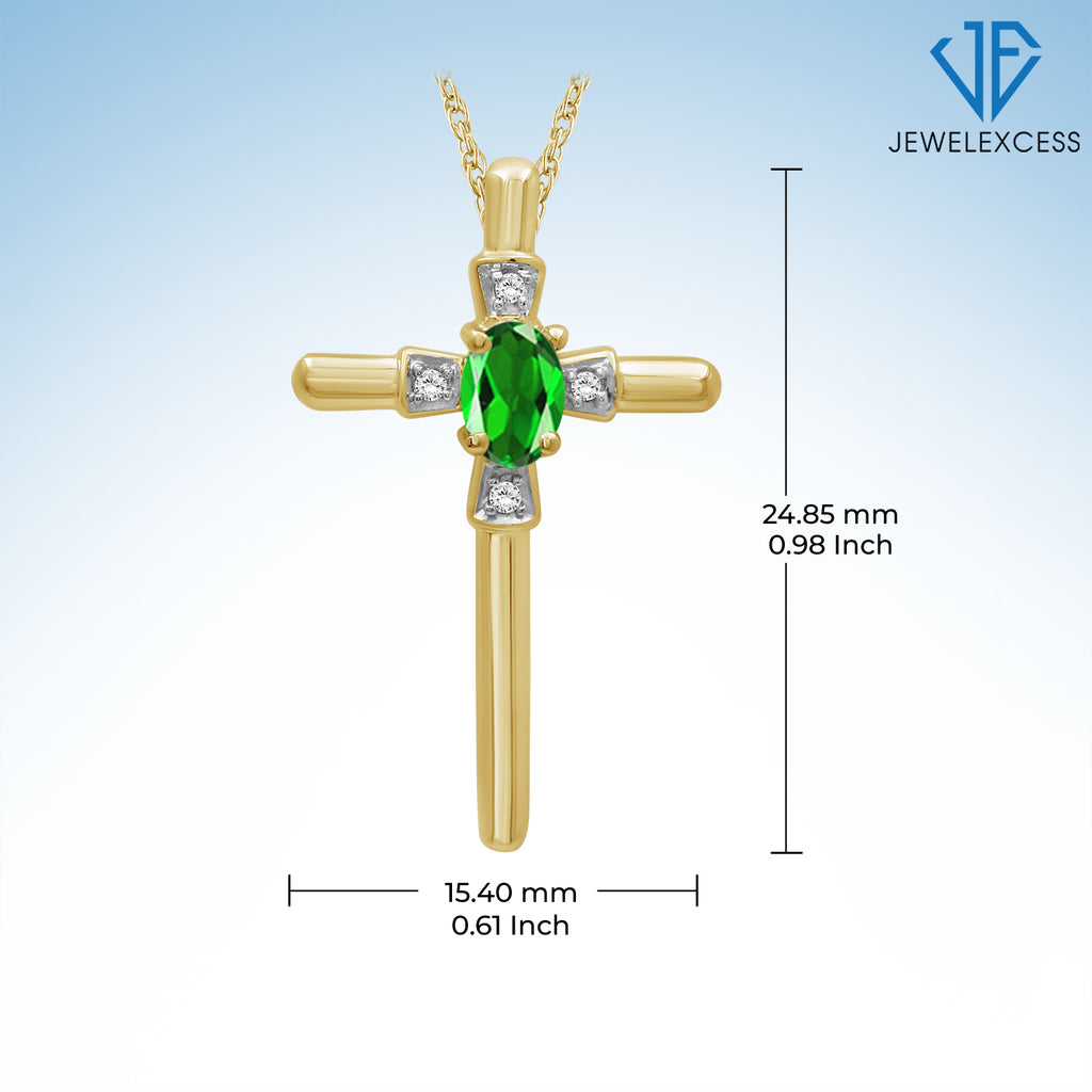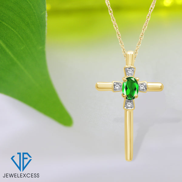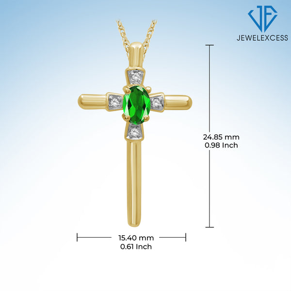 1/4 Carat T.G.W Chrome Diopside And White Diamond Accent 14K Gold-Plated Cross Pendant, 18"