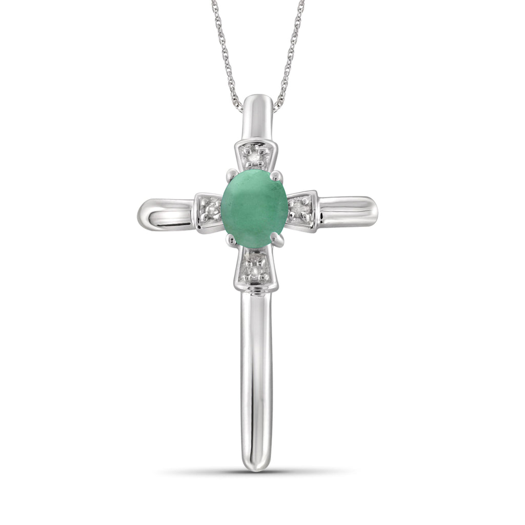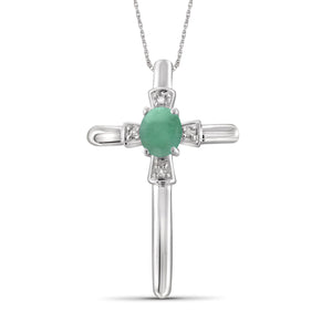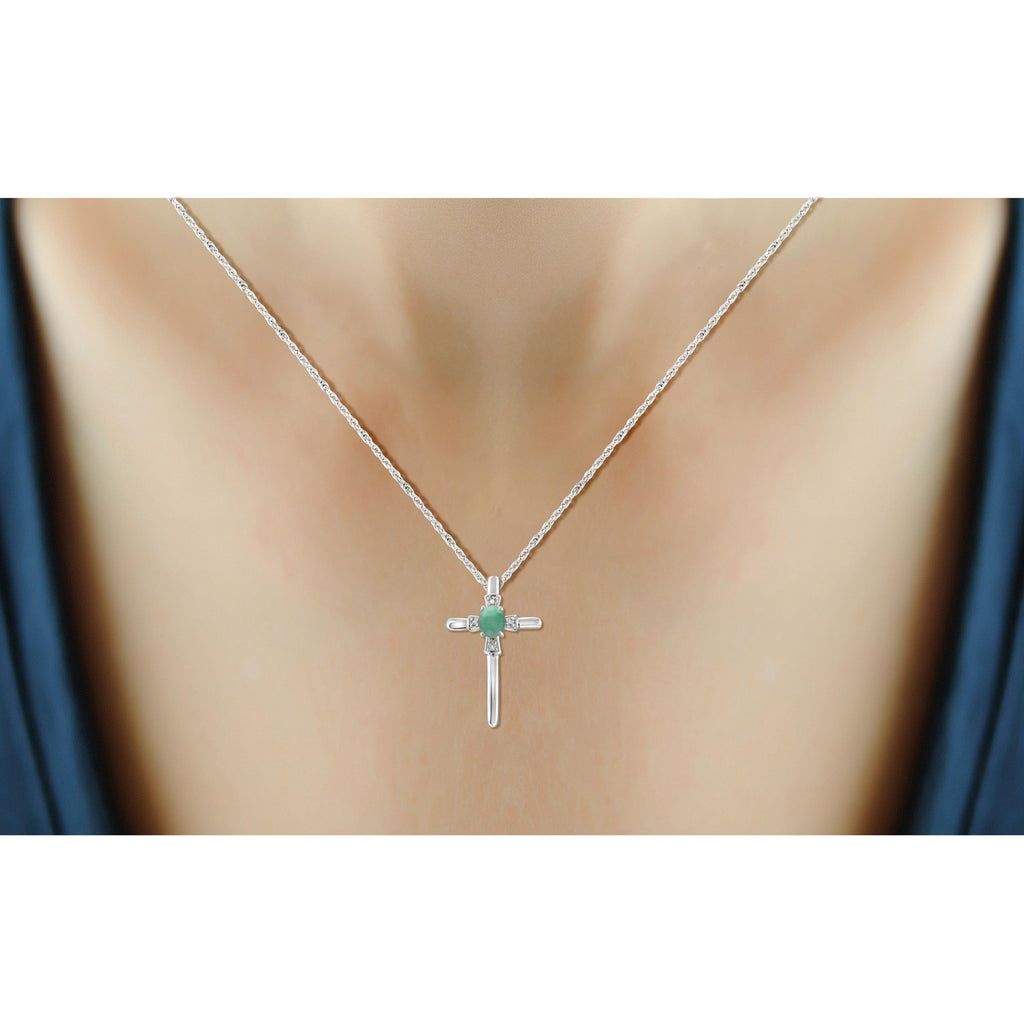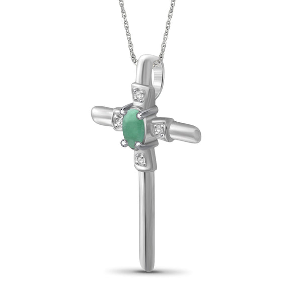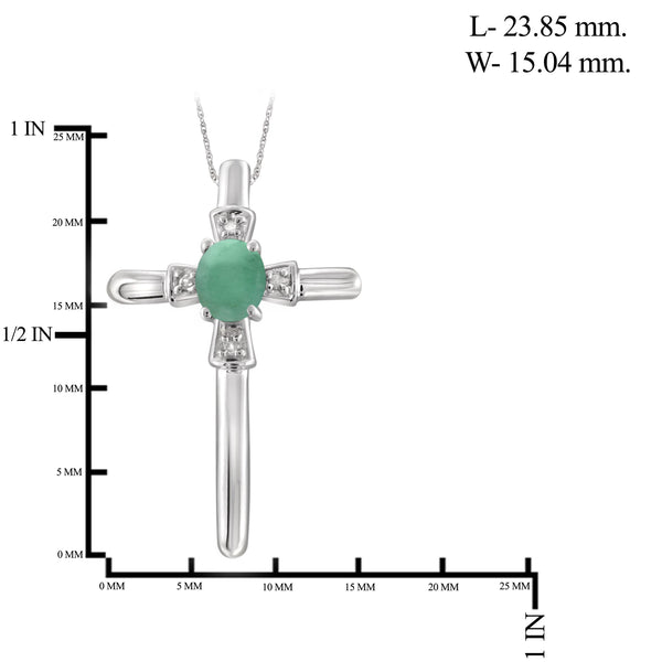 1/4 Carat T.G.W. Emerald And Accent White Diamond Sterling Silver Cross Pendant