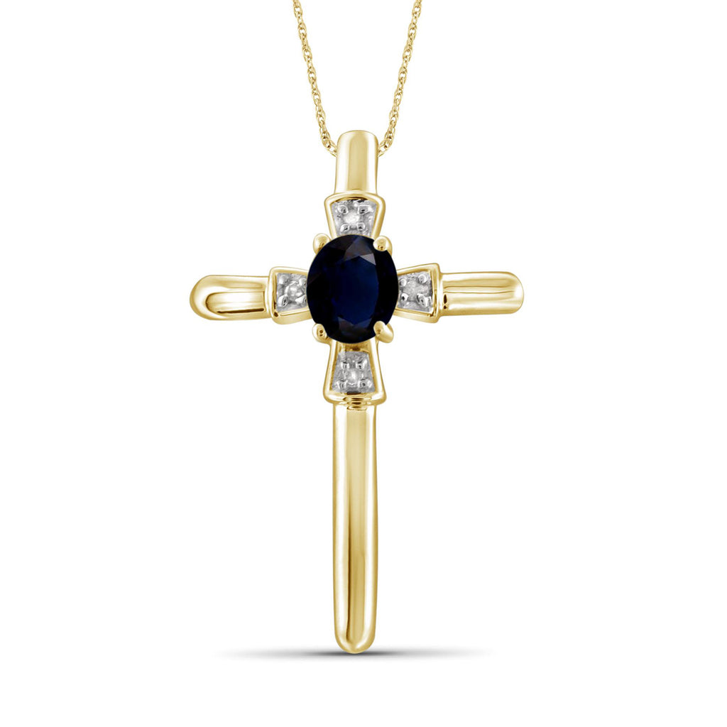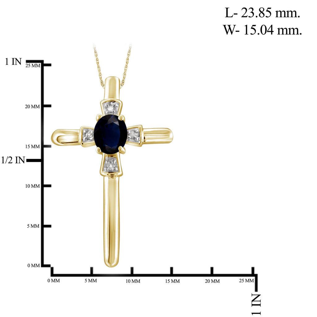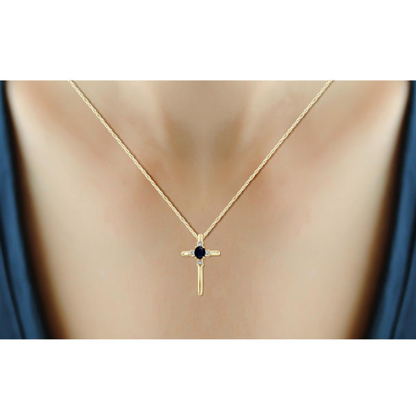 0.32 Carat Sapphire Gemstone and Accent White Diamond Cross 14K Gold-Plated Pendant