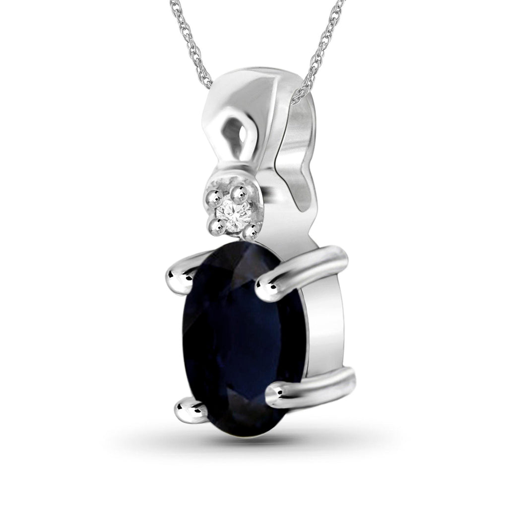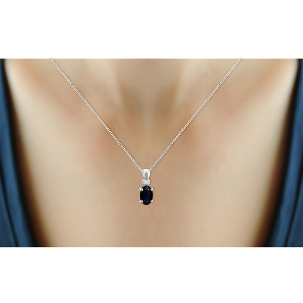 1/2 Carat T.G.W. Sapphire And White Diamond Accent Sterling Silver Pendant, 18"
