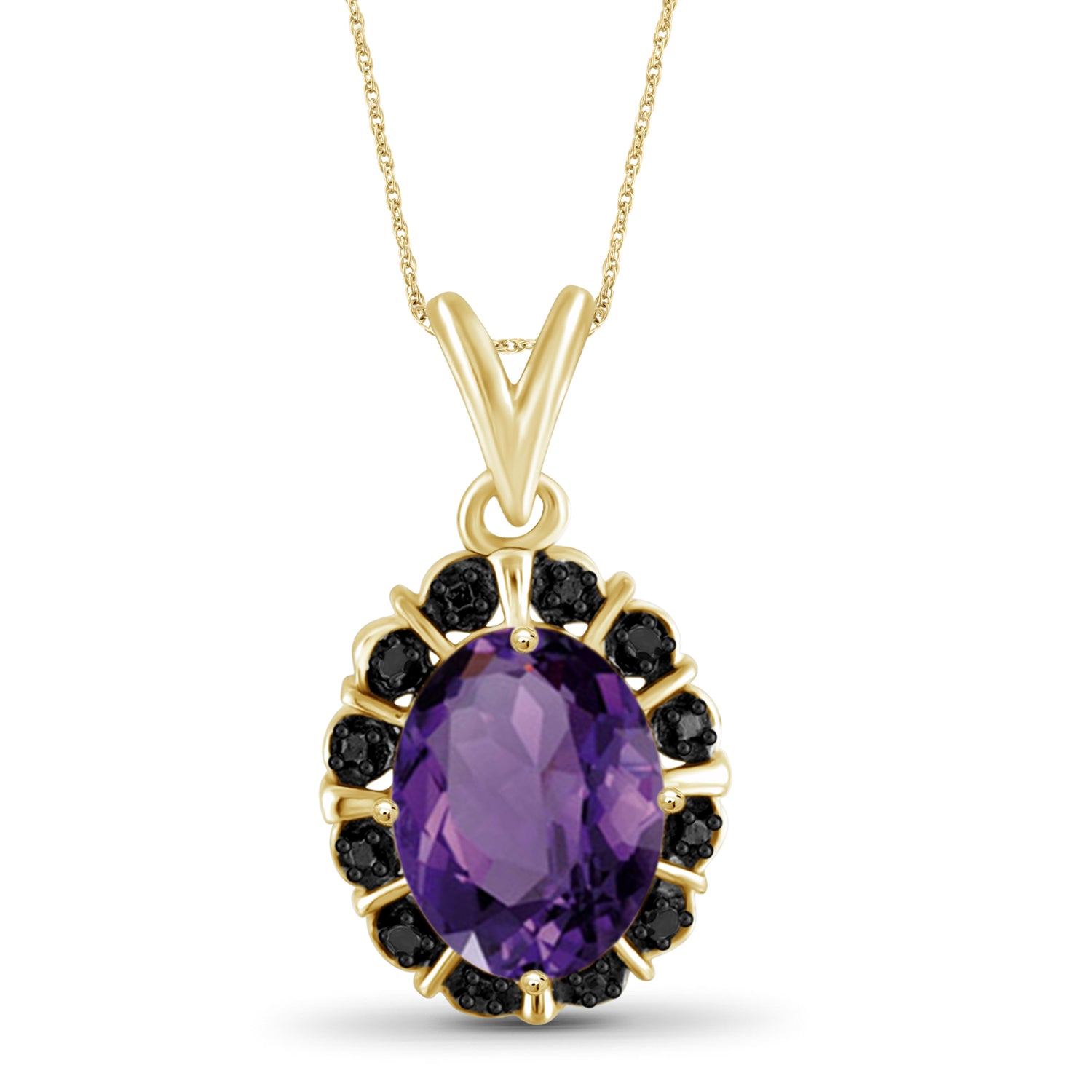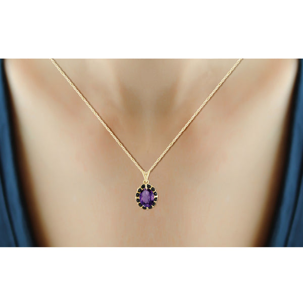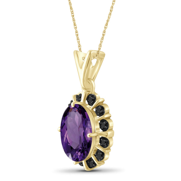 1.65 Carat T.W. Amethyst Gemstone and Accent Black Diamond 14K Gold-Plated Pendant, 18