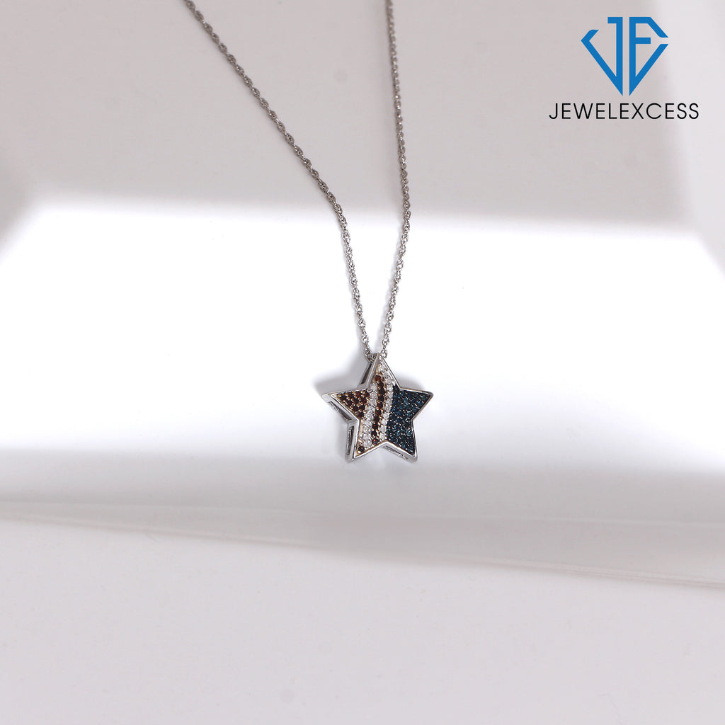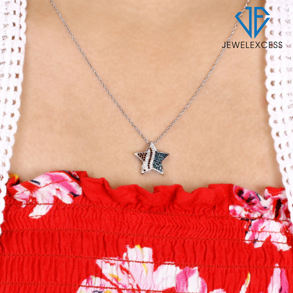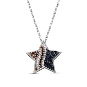 Star spangled chic. This gorgeous diamond star pendant necklace has both white round-cut diamonds and colored round-cut diamonds to create this lively design. Show your American pride with this beautiful pendant! This pendant will add the right amount of sparkle to any patriotic ensemble.