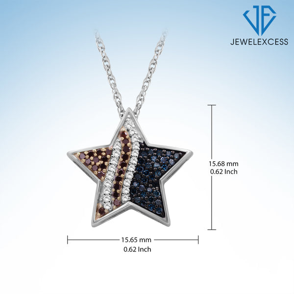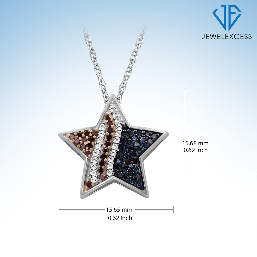 1/4 Carat T.W. Multi-Color Diamond Sterling Silver American Flag Star Pendant, 18"