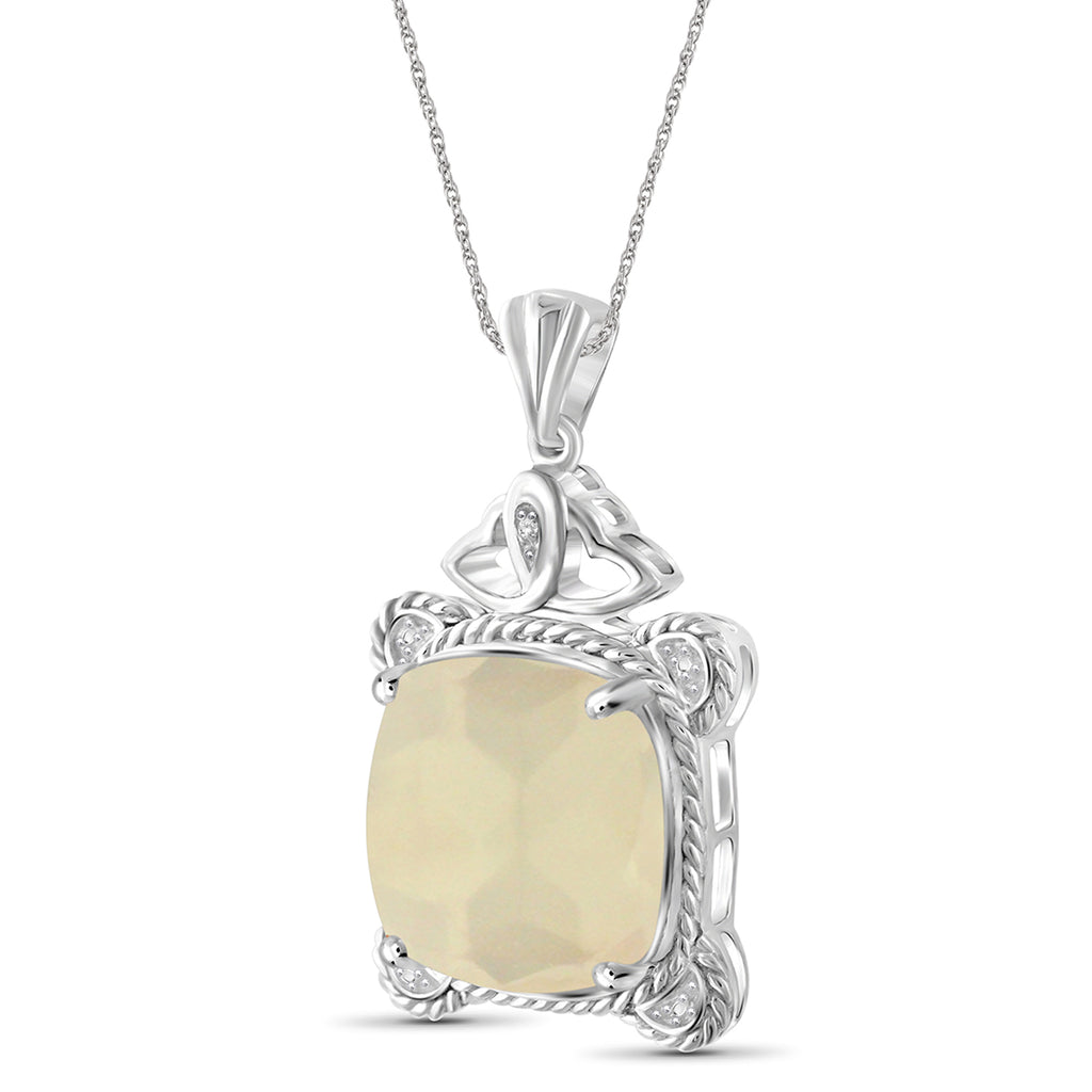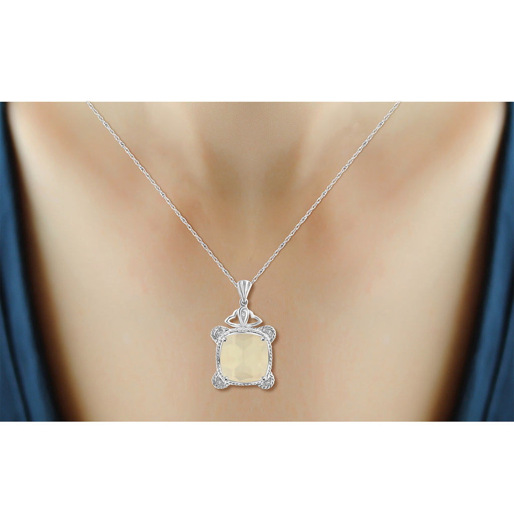 This moonstone pendant showcases the unique beauty of a gemstone that seems to reflect the radiance of a full moon. The large 14-millimeter cushion-shaped moonstone shines, making it one of the most versatile accessories in your jewelry box.Black diamonds are denser and weigh more than white diamonds. Therefore, black diamonds may appear substantially smaller than white diamonds of the same carat size.