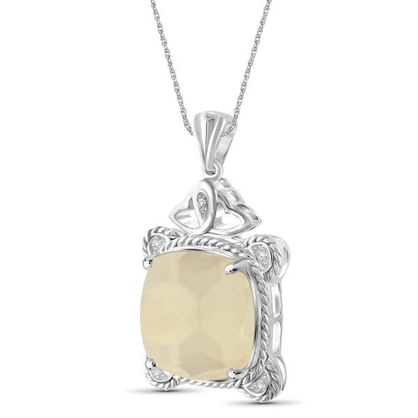 9 1/2 Carat T.G.W. Moonstone And Black & White Diamond Sterling Silver Pendant, 18"