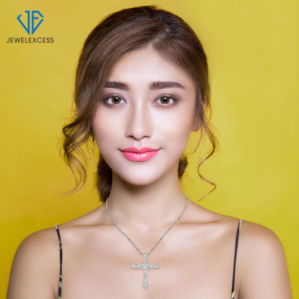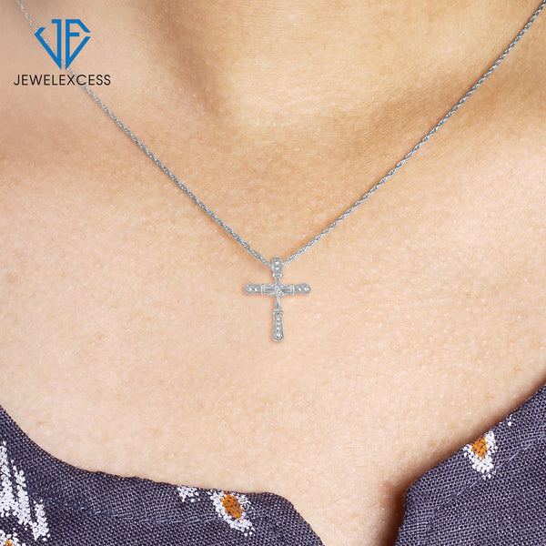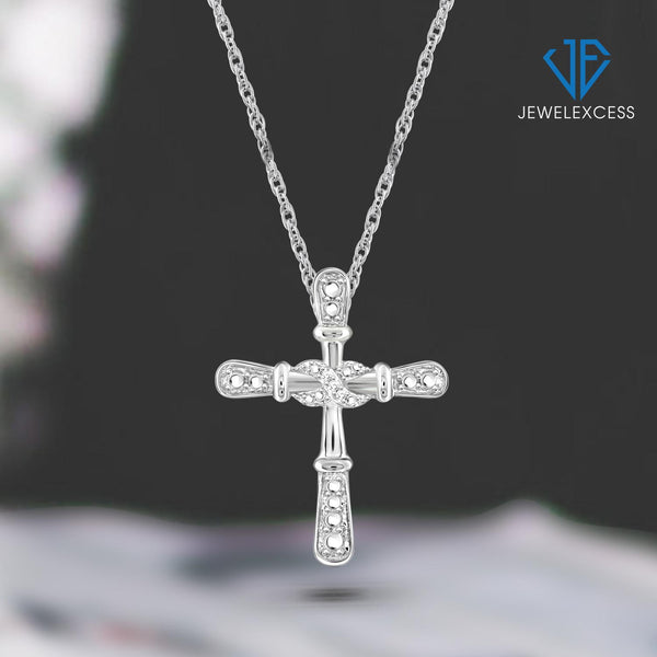 White Diamond Accent Sterling Silver Cross Pendant