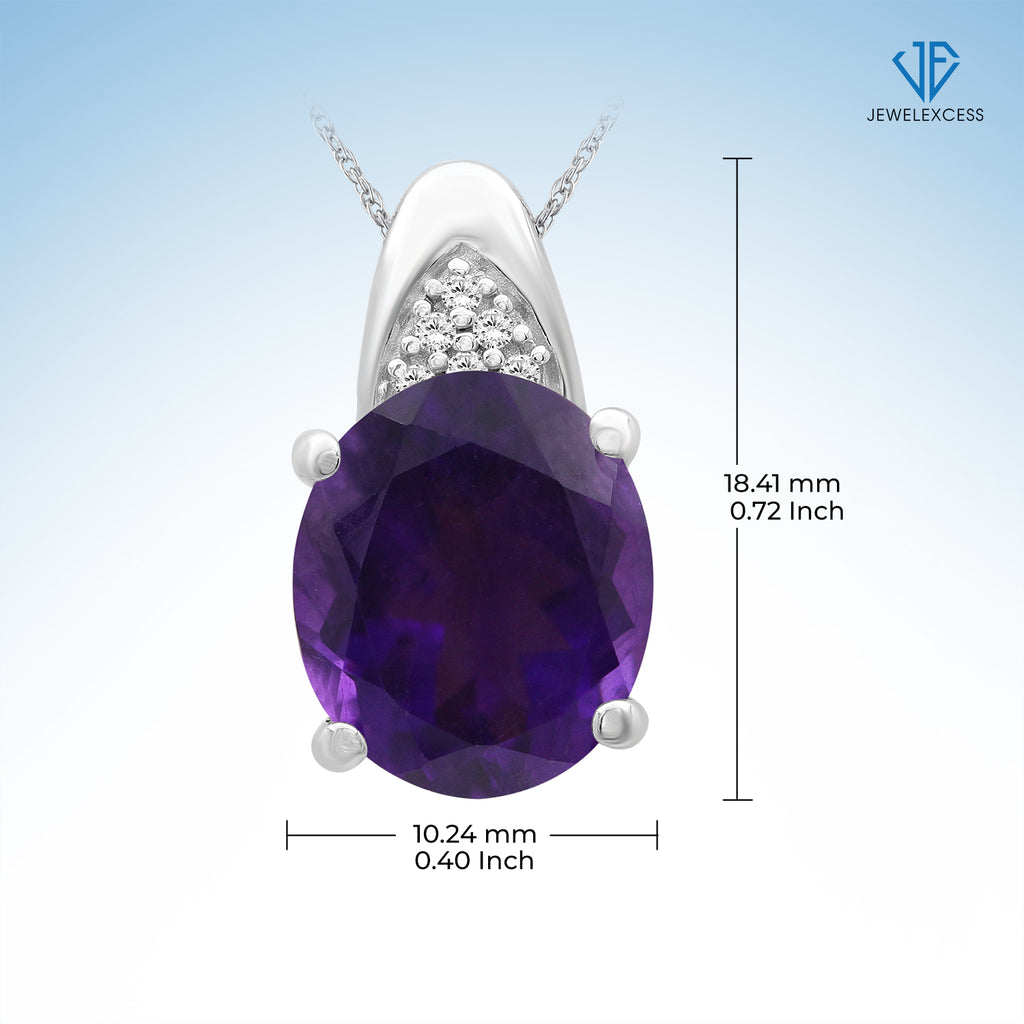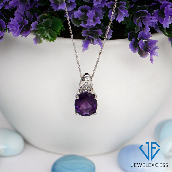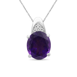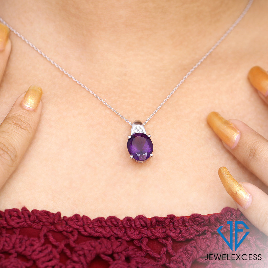 3.20 Carat Amethyst & 1/20 Carat White Diamonds Pendant in Sterling Silver