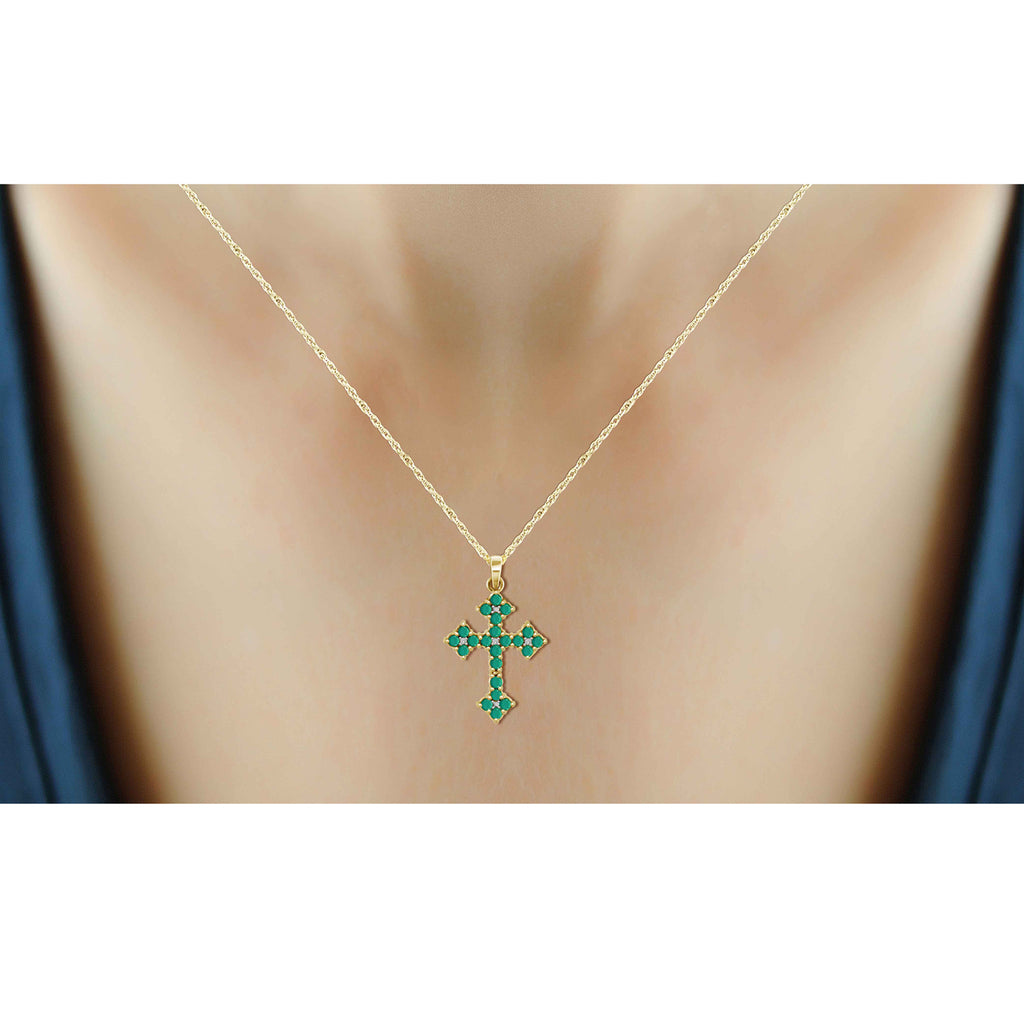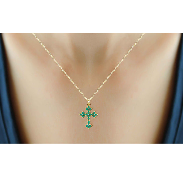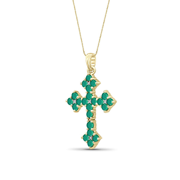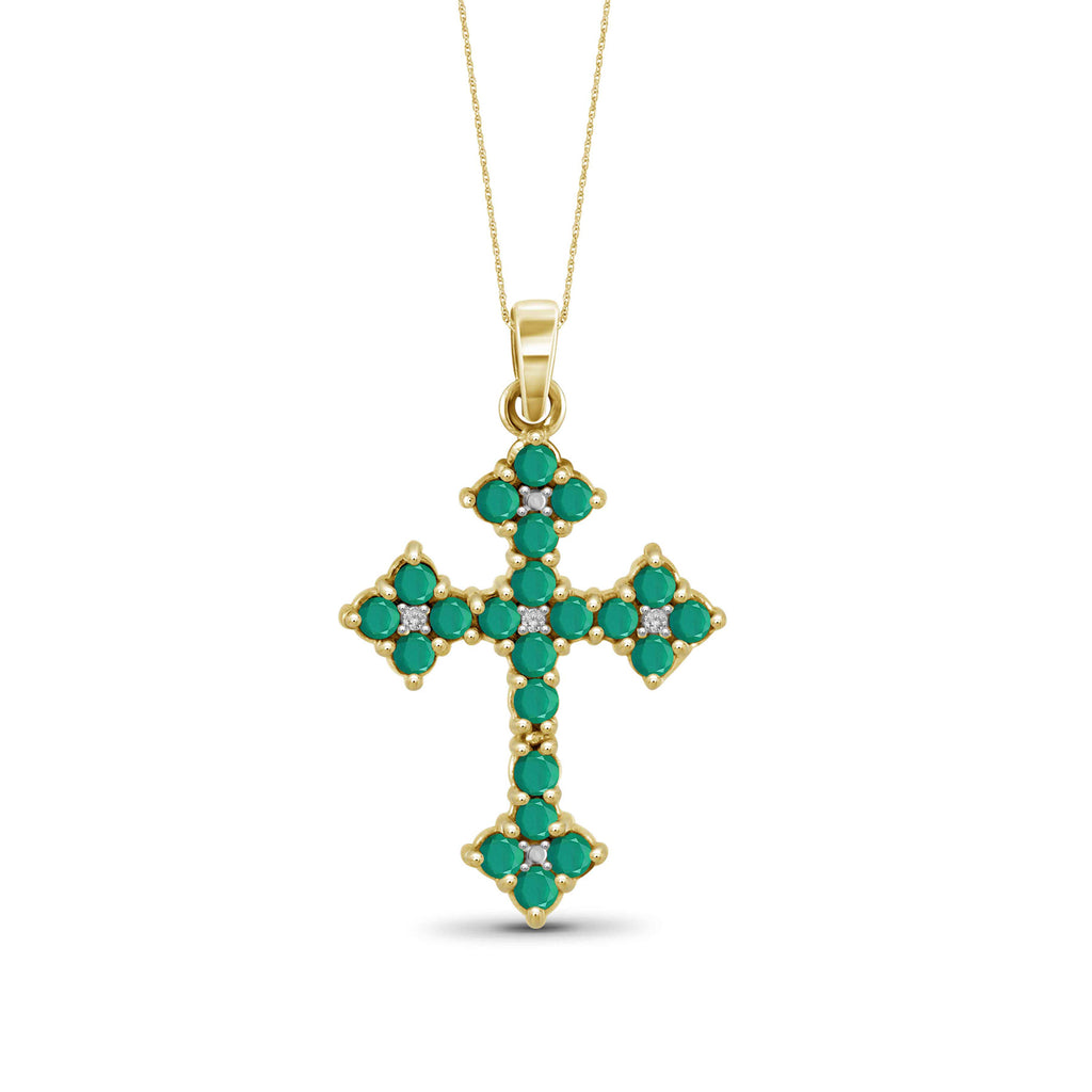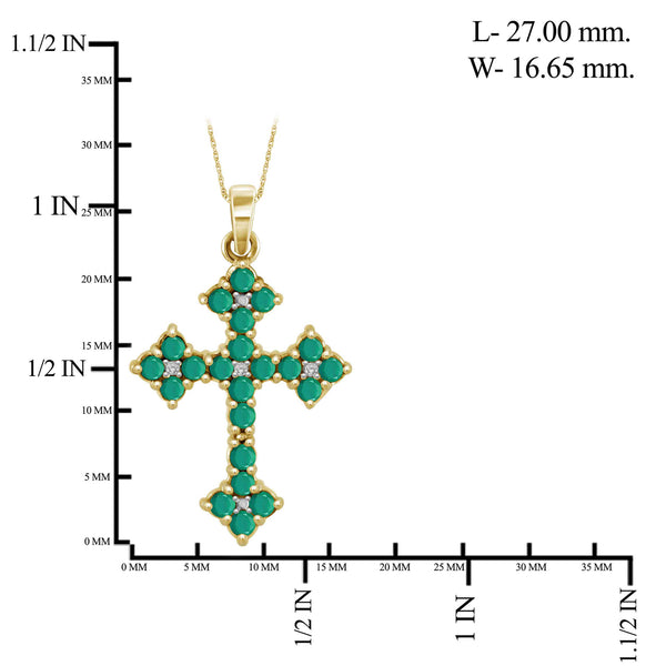 1.30 CTW Emerald & Accent White Diamonds Cross Pendant in 14K Gold Plated Silver