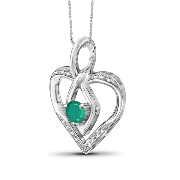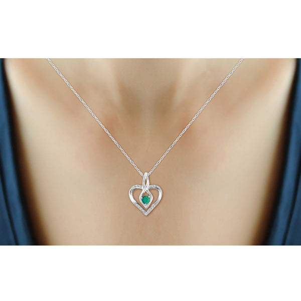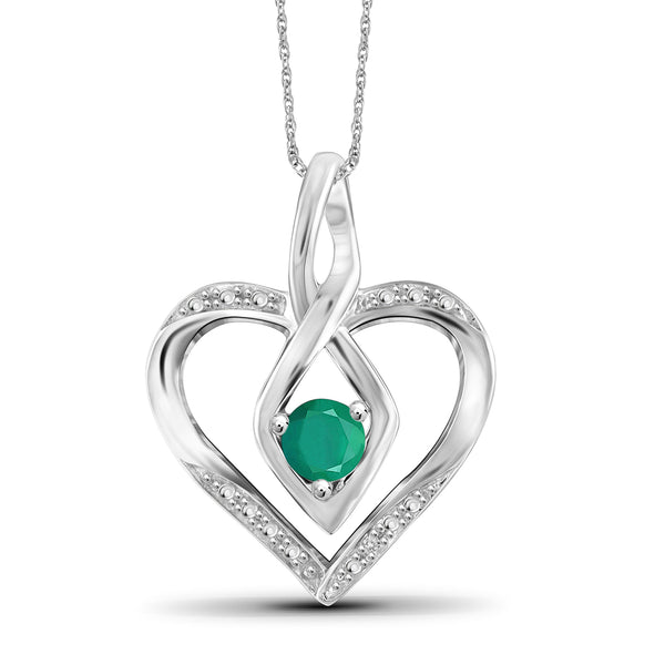 0.27 CTW Emerald & Accent White Diamonds Heart Pendant in Sterling Silver