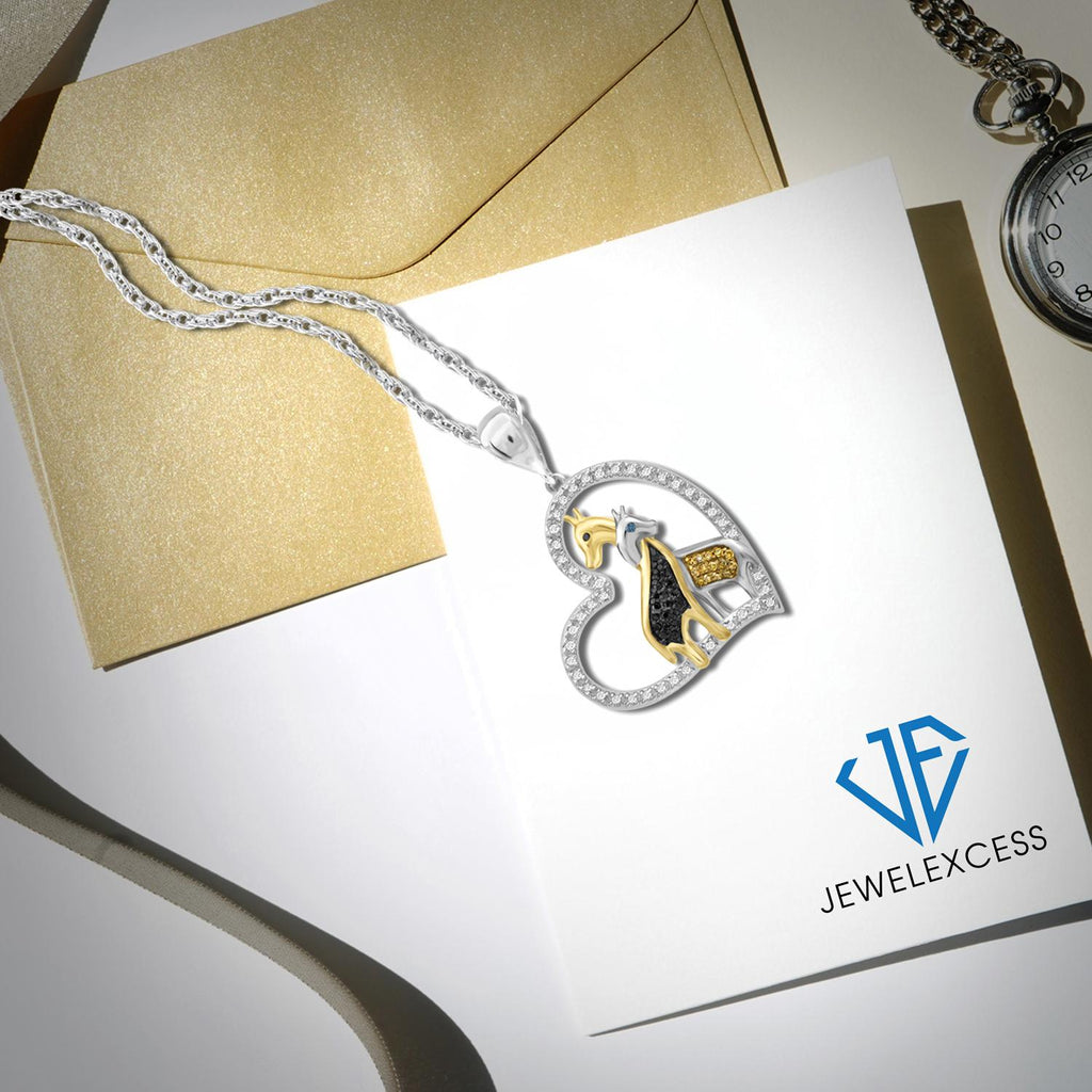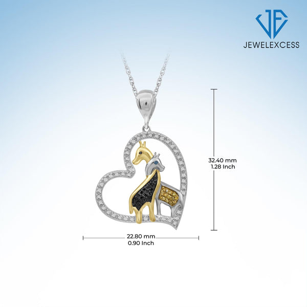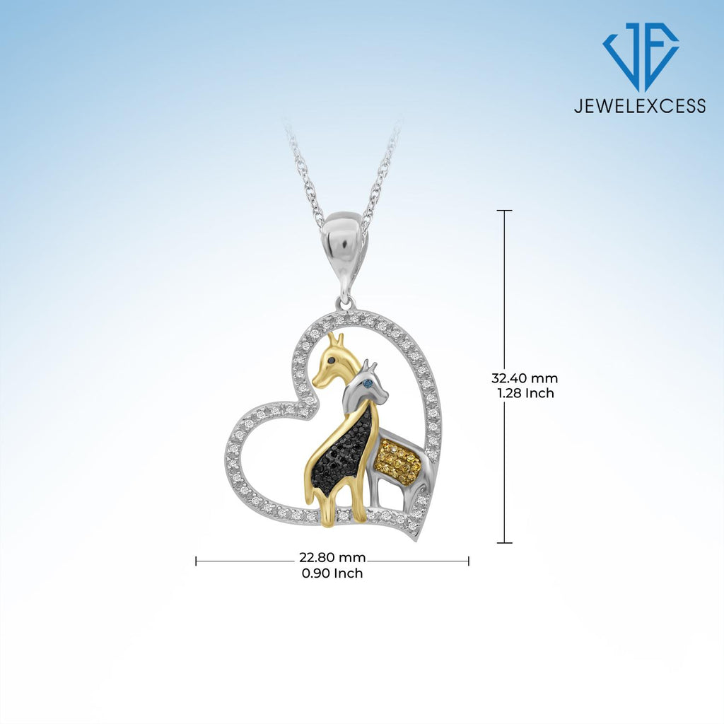 1/5 Ctw Multi Color Diamond Two-Tone Sterling Silver Giraffes Heart Pendant