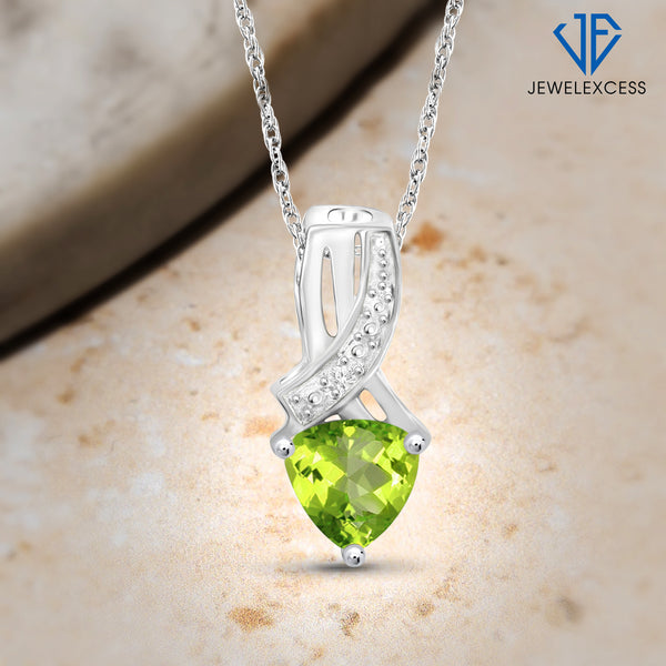 1.00 Carat T.G.W. Peridot And White Diamond Accent Sterling Silver Pendant