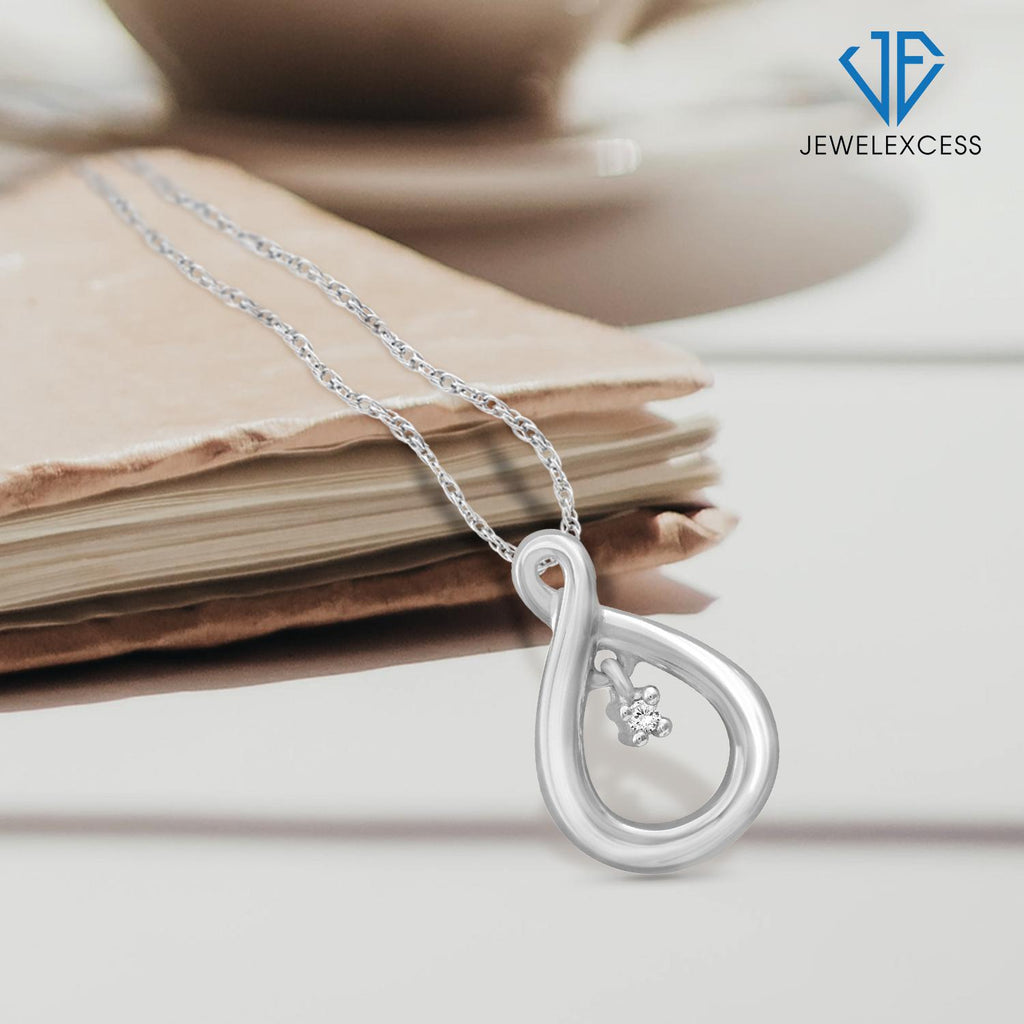 Accent White Diamond Sterling Silver Pear Shap Pendant
