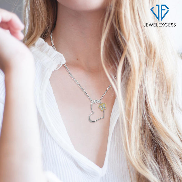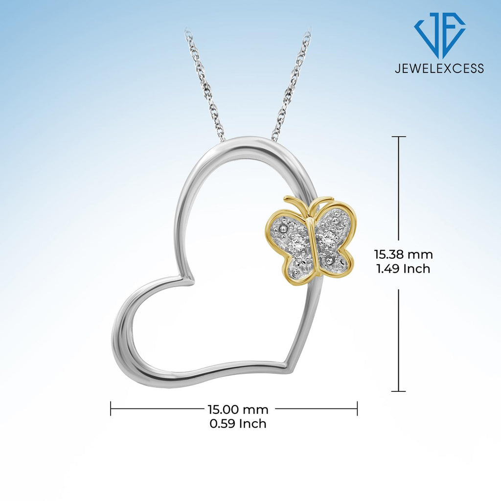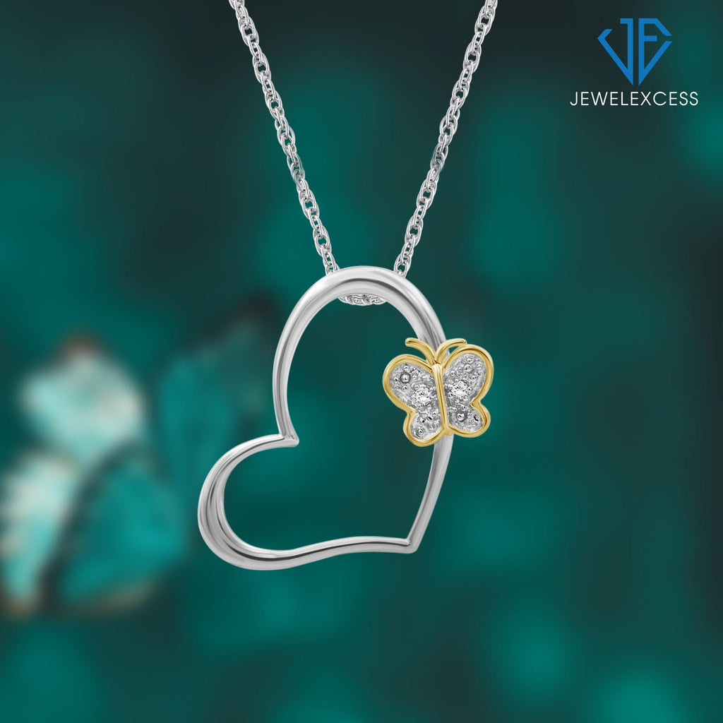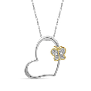 Accent White Diamond Two-Tone Sterling Silver Butterfly Heart Pendant