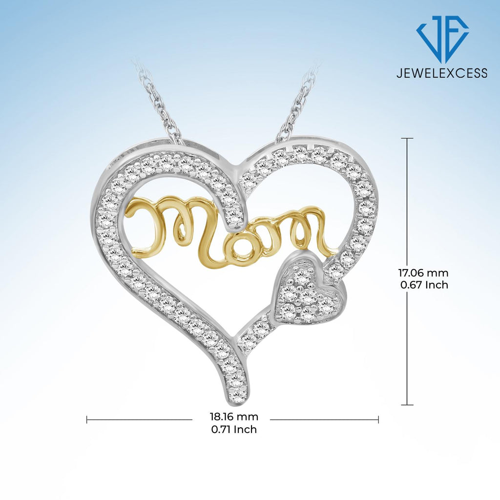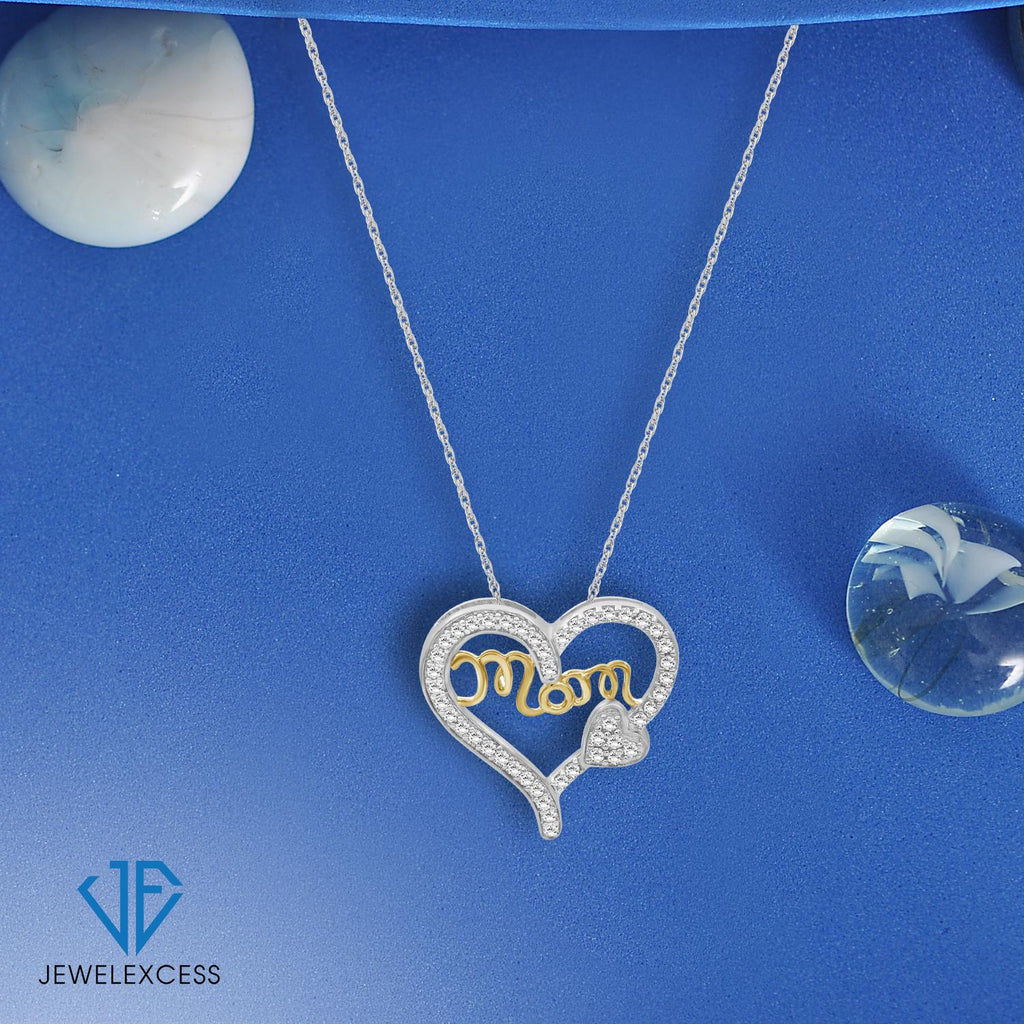 1/2 Carat White Diamond Two Tone Sterling Silver Mom Heart Pendant