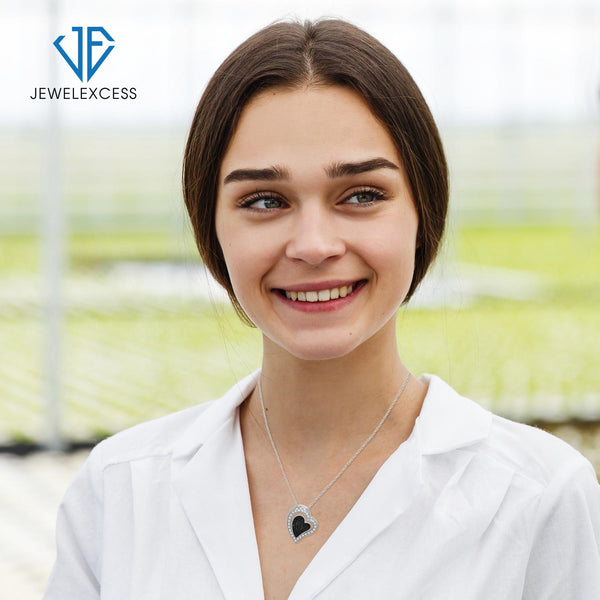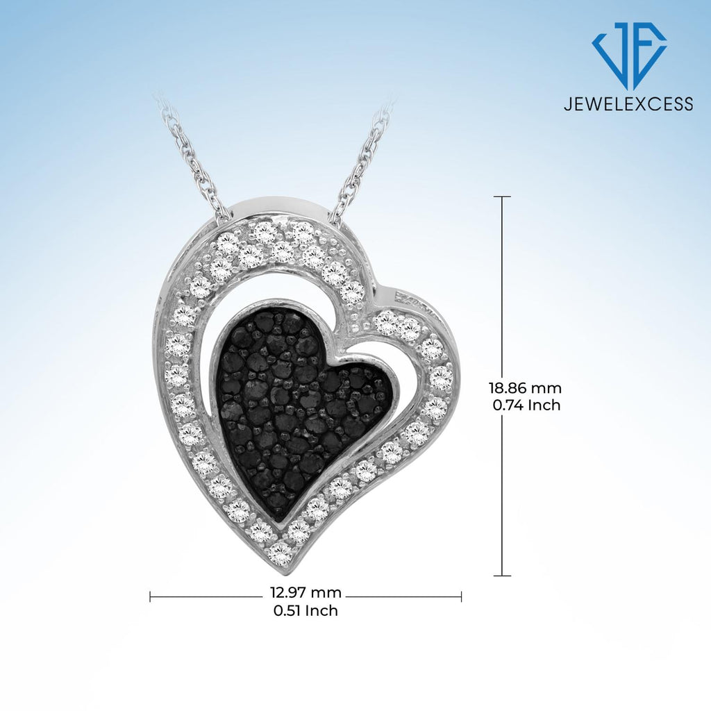 1/2 Carat Black & White Diamond Sterling Silver Heart Pendant