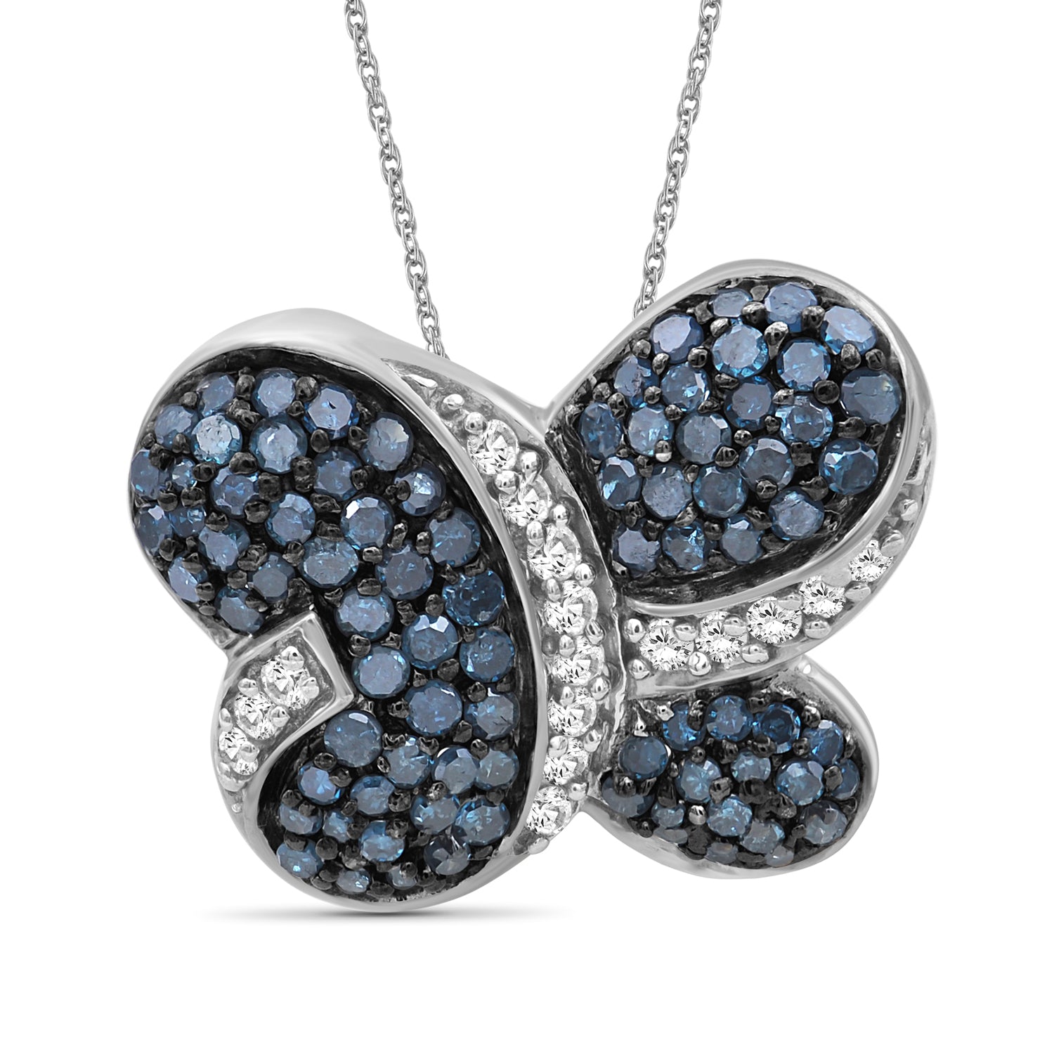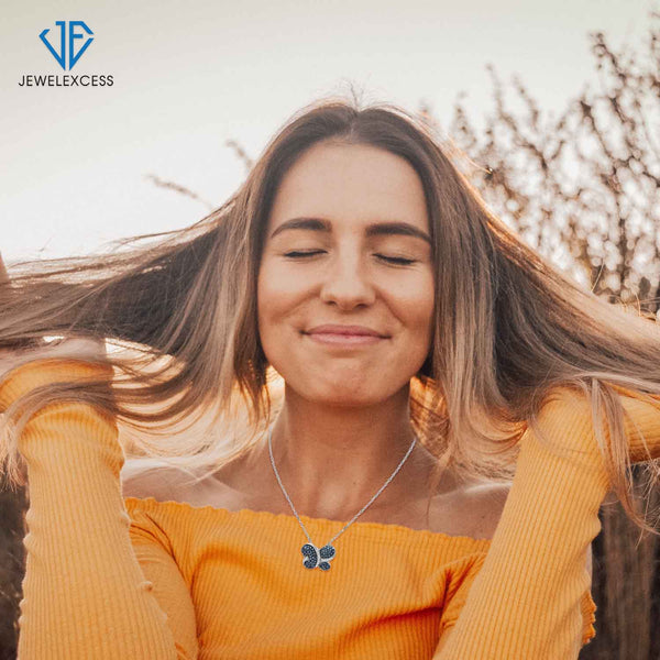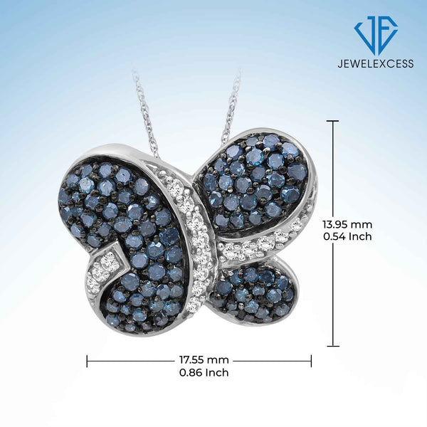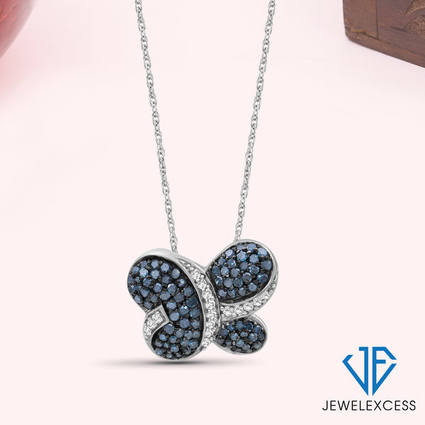 1 Carat Blue & White Diamond Sterling Silver Butterfly Pendant